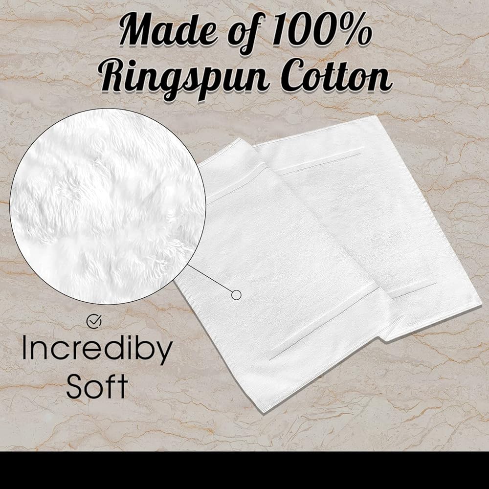 مجموعة من 2 سجادة حمام مصنوعة من القطن بنسبة 100%، سجادة منشفة أرضية الحمام - ذات امتصاص إضافي - سجادات حمام قابلة للغسل في الغسالة - إكسسوارات - أبيض