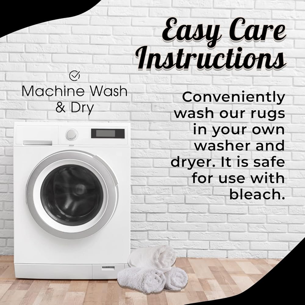 • عناية سهلة للغاية: تتضمن مجموعة سجادة الحمام الخاصة بنا سجادتين (2) كبيرتين للحمام يمكن غسلهما في الغسالة، وآمنة للاستخدام في المجفف والمبيضات. تخلص من الصداع والمتاعب الناتجة عن تنظيف سجادات الحمام المتسخة باستخدام سجادات الحمام المريحة القابلة للغسل.