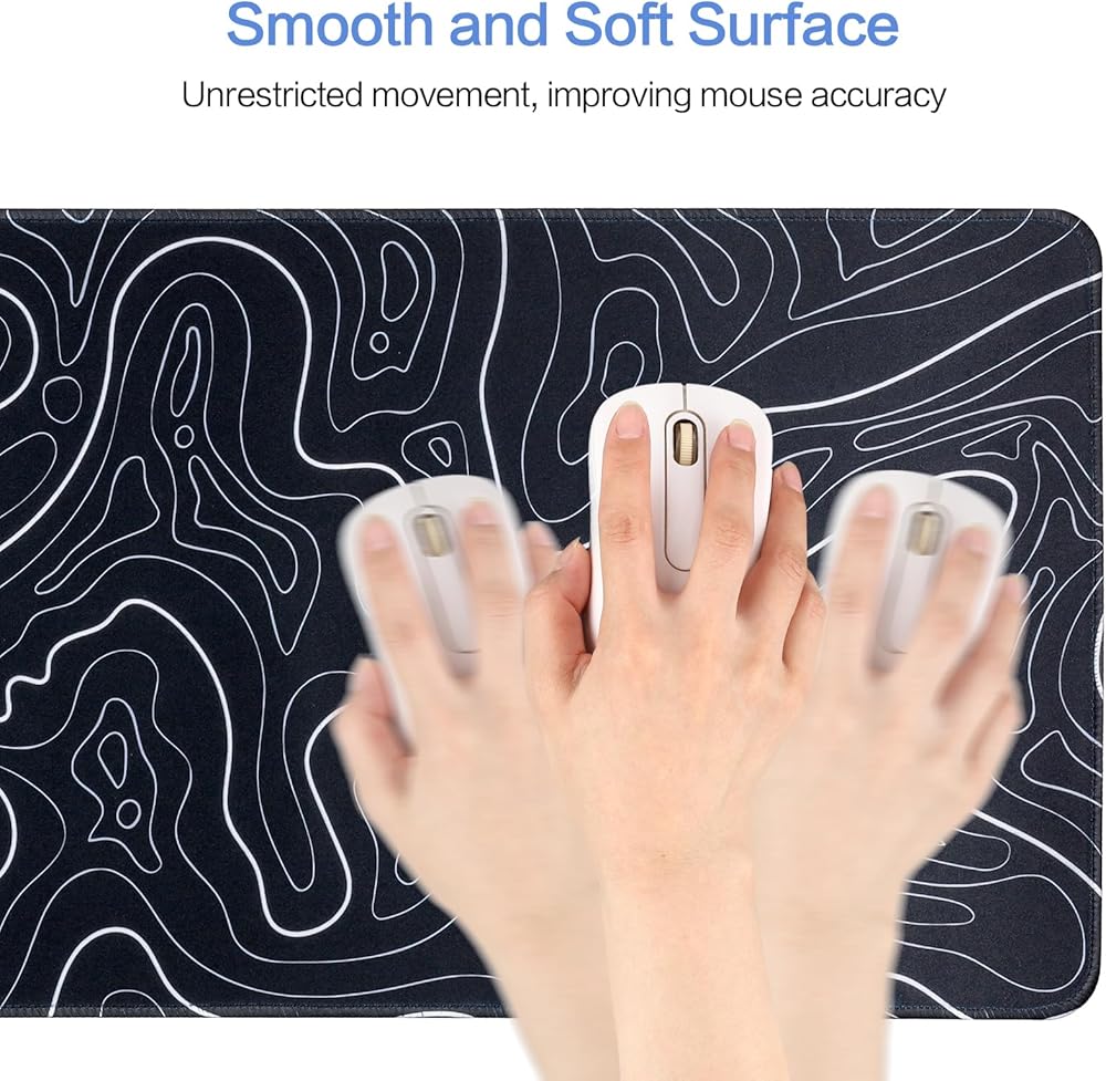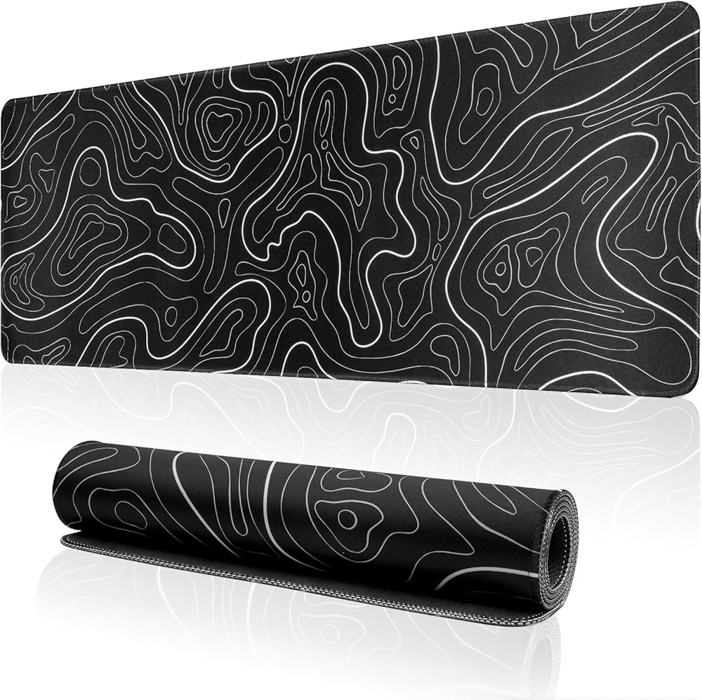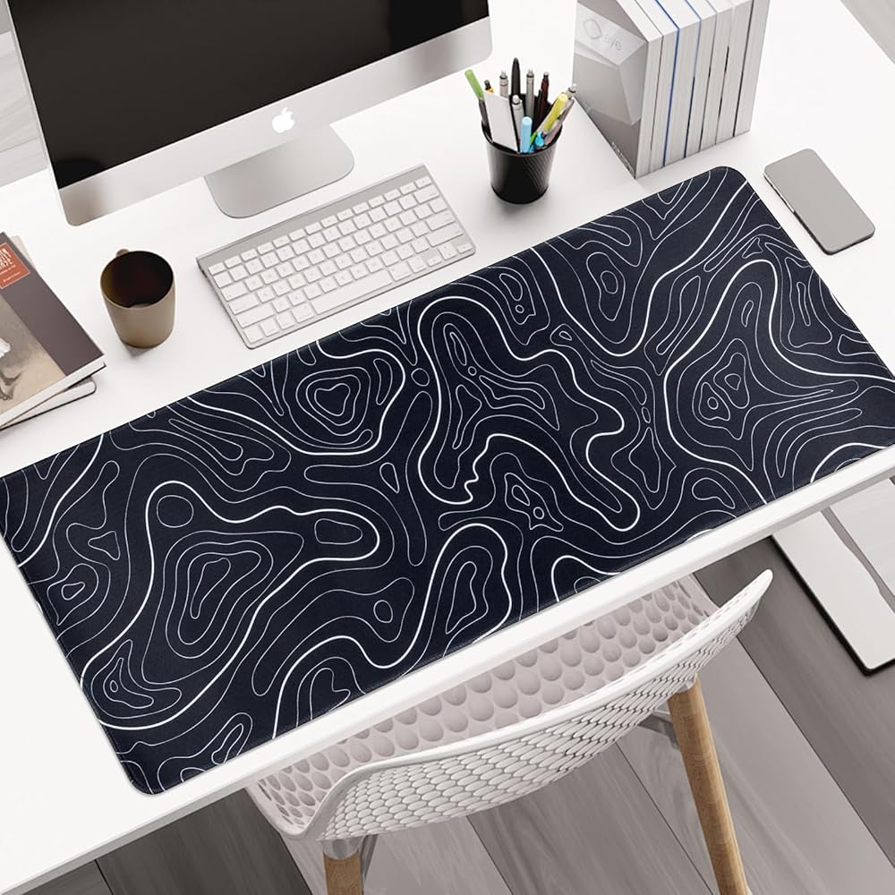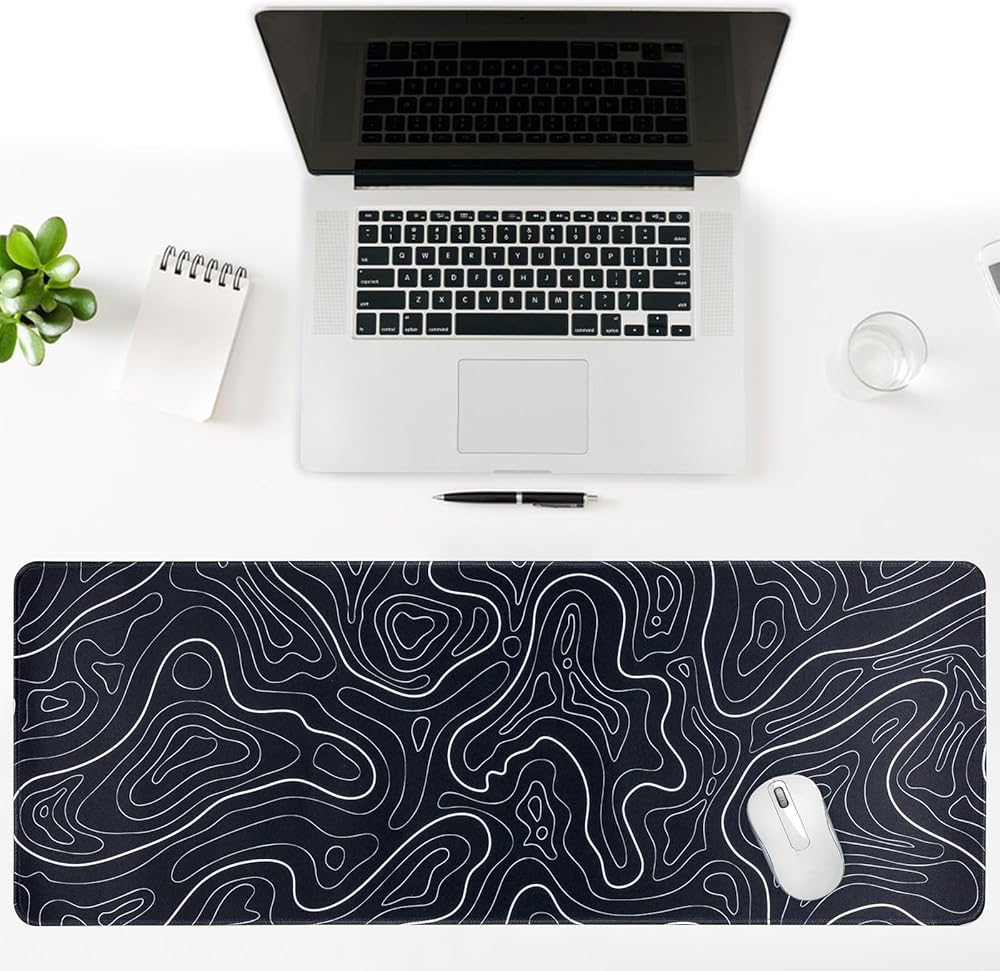 Title: Gaming Mouse Pad - Topographic Map Design, Extended Desk Mat, 31.5 X 11.8 Inch, Non-Slip Base, Water-Resistant, Easy to Clean