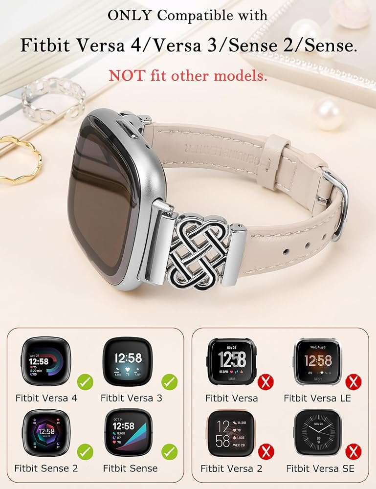الملاءمة: هذه الأساور الجلدية الأنيقة للنساء متوافقة مع موديلات Fitbit Versa 4/Versa 3/Fitbit Sense 2/Sense. يناسب المعصم من 5.2 سم إلى 7.5 سم، ويناسب معظم الأشخاص.