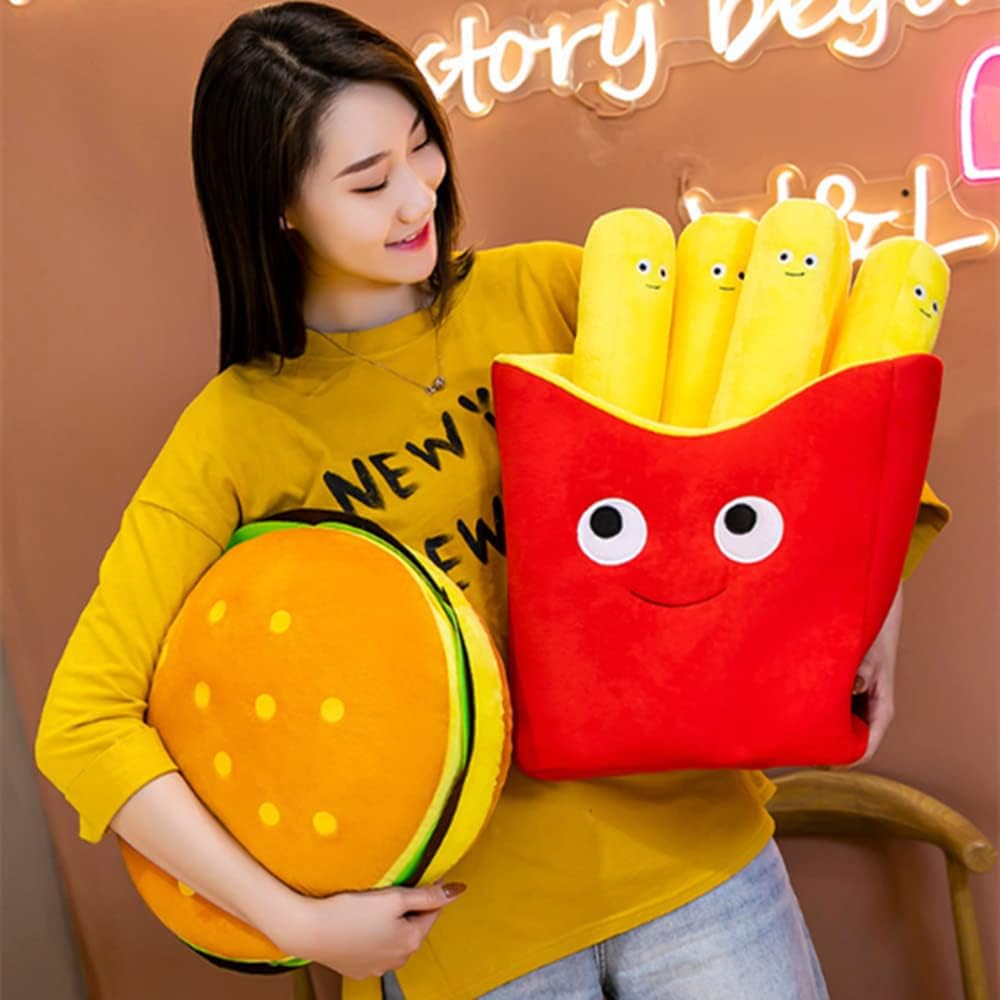 Great Gift: Our plush french fries toy is beautiful and functional, making it the best gift for a friend, kid or parent. It can also be used as a toy, a great gift for fries lovers, and a fun and cute food plush decorative pillow.