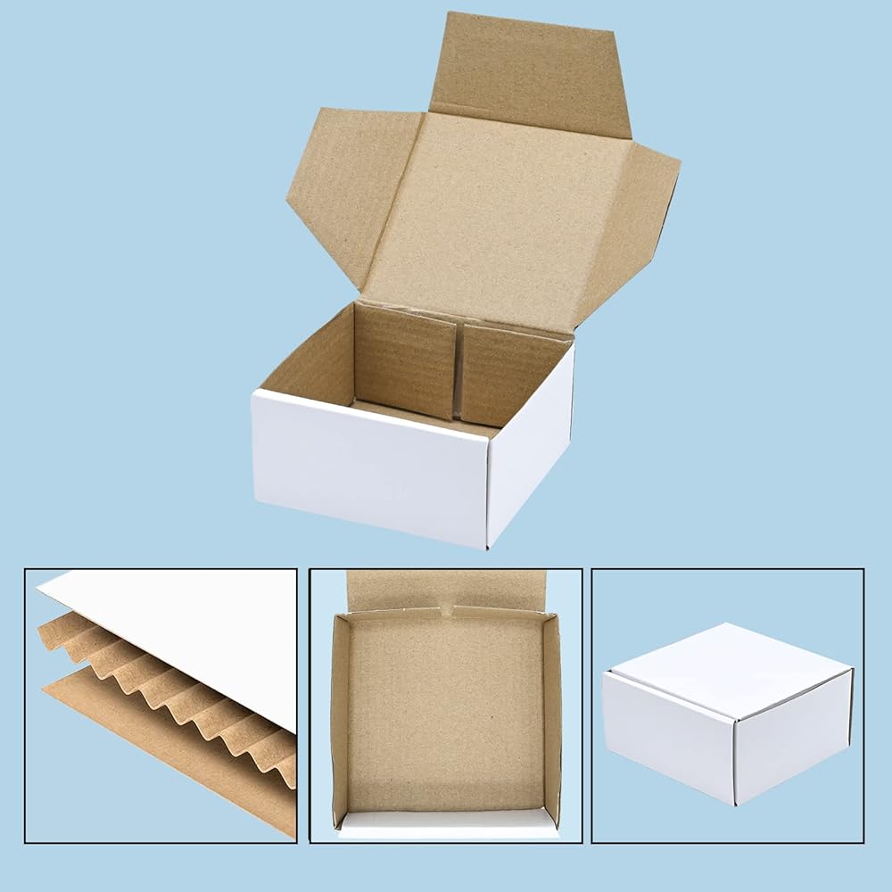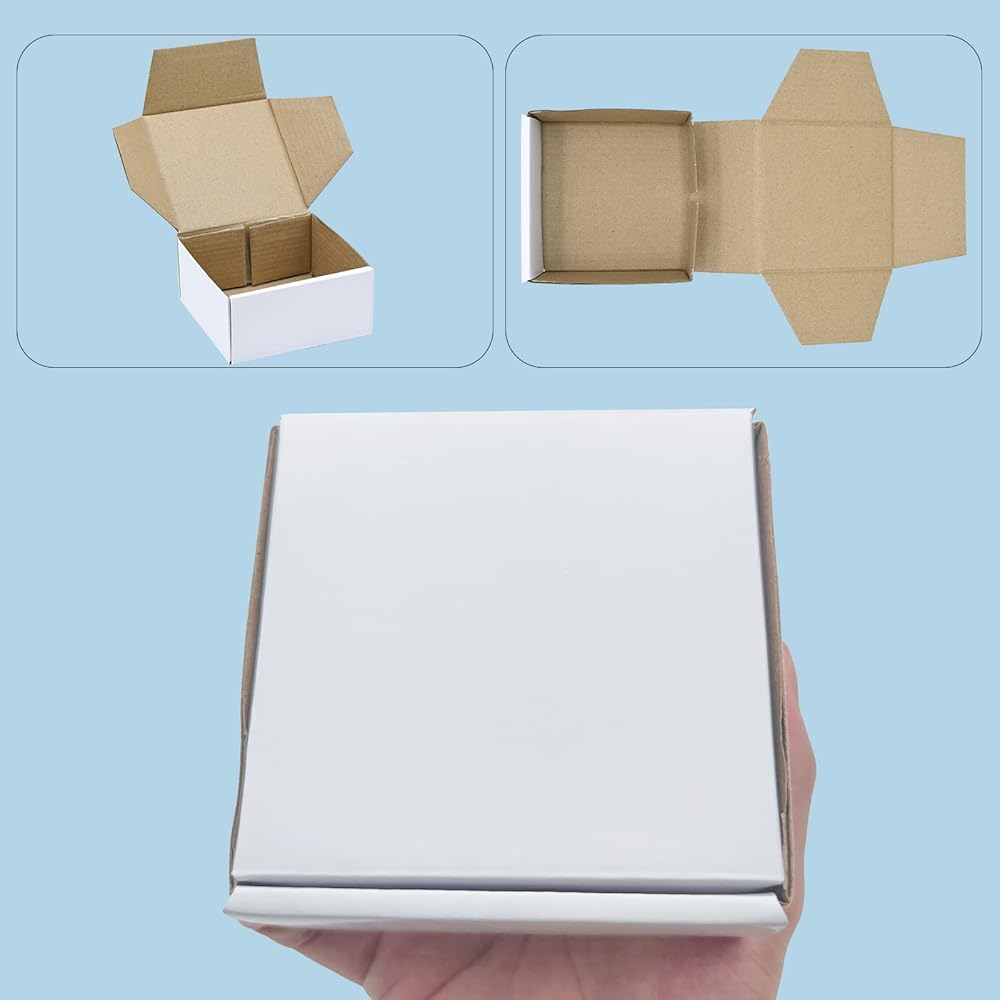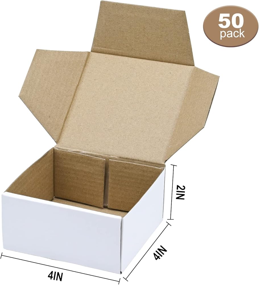 صناديق شحن صغيرة KBG مقاس 4 × 4 × 2 بوصة، رسائل بريدية من الورق المقوى المموج الأبيض للأعمال، 50 حزمة صناديق بريد صغيرة صندوق تغليف صغير