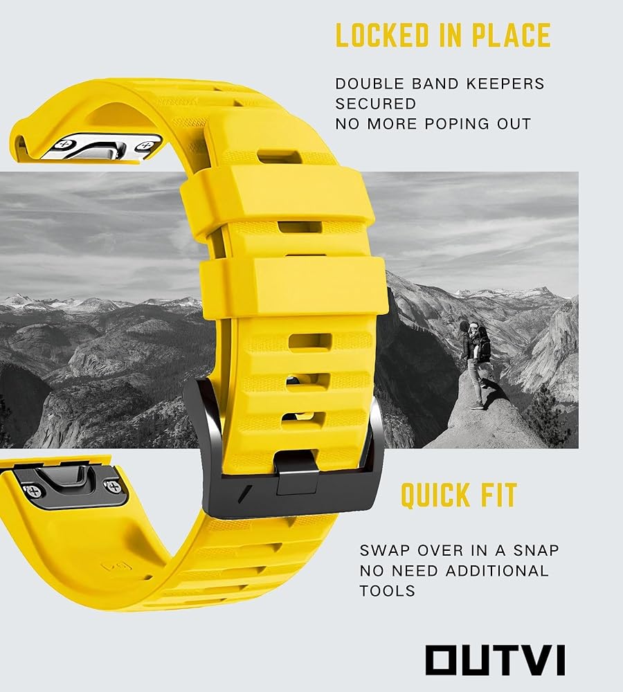 سوار ساعة 26 ملم متوافق مع garmin fenix 5x 6x Pro 7x 3 ساعات من السيليكون المتين سريع التركيب 26 حزام بديل لـ Epix Pro Gen 2 51 ملم Enduro 2 Descent Mk1 Mk2 Mk2i Mk3i tactix للرجال والنساء أصفر