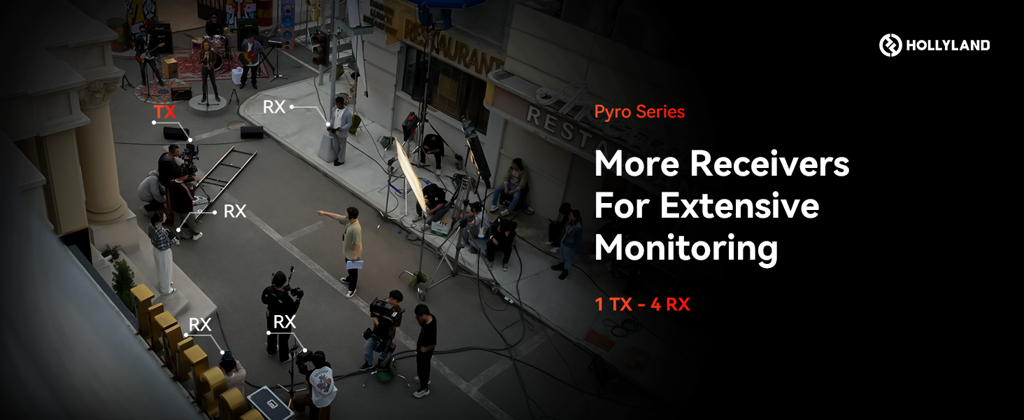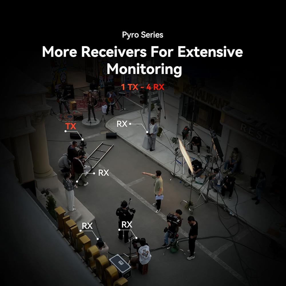 • [التعاون المحسن وتطبيق Hollyview] - يمكن لـ Pyro H الإرسال إلى ما يصل إلى 4 أجهزة استقبال مختلفة، مما يسمح لجميع أطقم العمل بالمراقبة. إلى جانب دعم تطبيق Hollyview المخصص، يمكن للفرق مراقبة الخلاصات في الوقت الفعلي دون عناء، وإجراء تعديلات سريعة لتحقيق كفاءة لا مثيل لها وعمل جماعي في أي سيناريو تصوير.