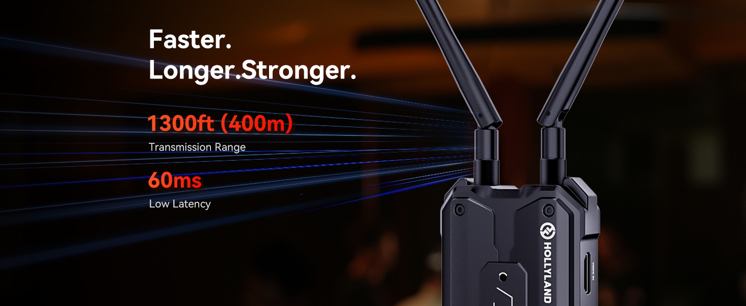 • [أسرع. طويل. أقوى.] - يضع Pyro H معيارًا جديدًا مع نطاق إرسال مثير للإعجاب يصل إلى 1300 قدم (400 متر) وزمن وصول منخفض للغاية يبلغ 60 مللي ثانية فقط. تم تصميمه لتلبية متطلبات التصوير الاحترافي والبث المباشر، مما يضمن تجربة مشاهدة لا تشوبها شائبة، مما يسمح بالتوجيه والتعليقات في الوقت الفعلي، حتى في البيئات الأكثر تحديًا.