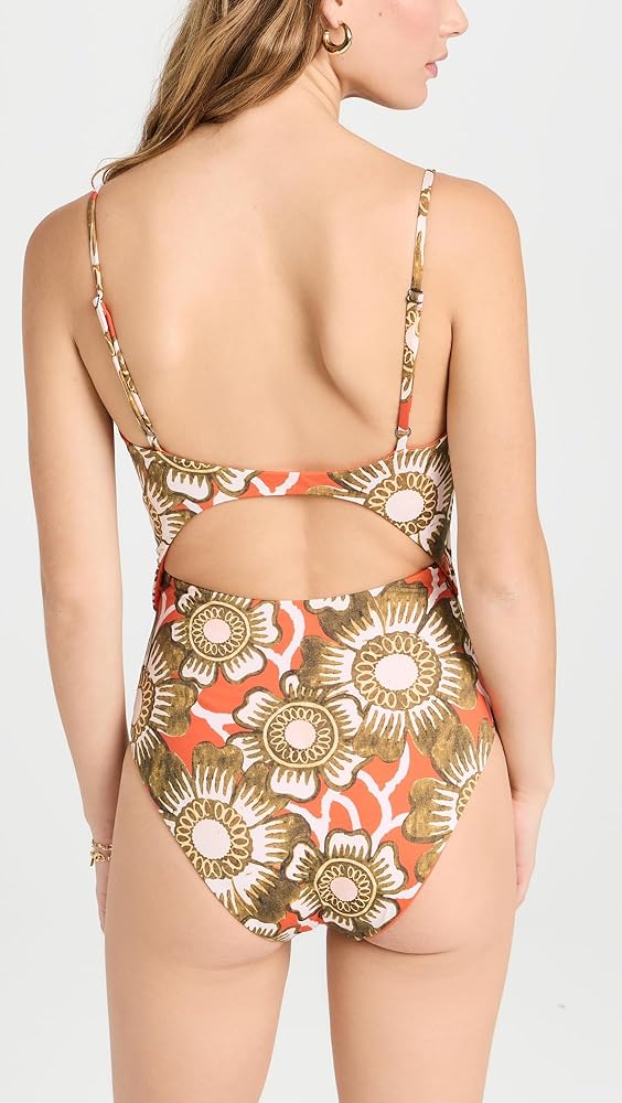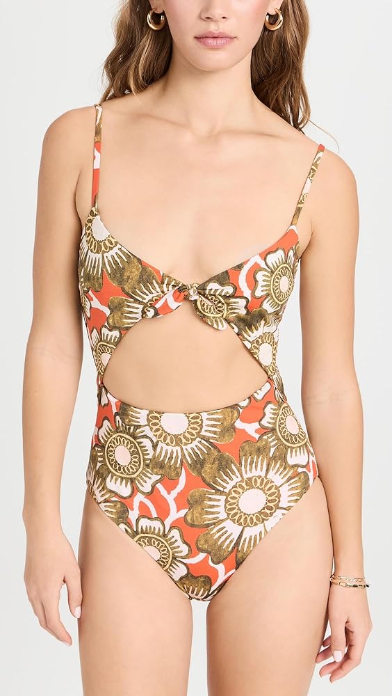 - عقدة عند الصدر وفتحة عند الخصر، مصنوعة من النايلون المعاد تدويره، طباعة زهور