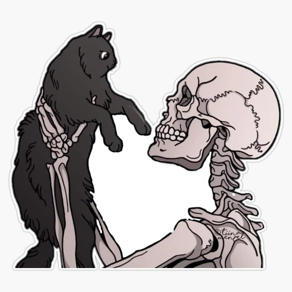 الهيكل العظمي والقطة السوداء ملصق ملصقات للسيارة متعددة الأشكال ملصق حائط من الفينيل 5"