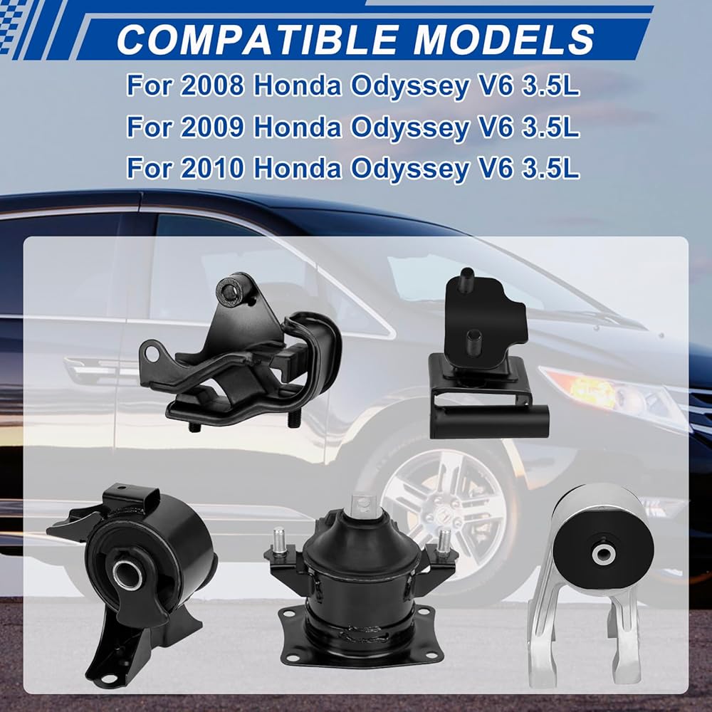 مجموعة محرك المحرك وناقل الحركة 5 قطع متوافقة مع Honda Odyssey 2008 2009 2010 V6 3.5L، محرك المحرك الأمامي الخلفي ناقل الحركة الأوتوماتيكي 65016 A4553 A65023HY A4557 A4558 50810-SHJ-A00
