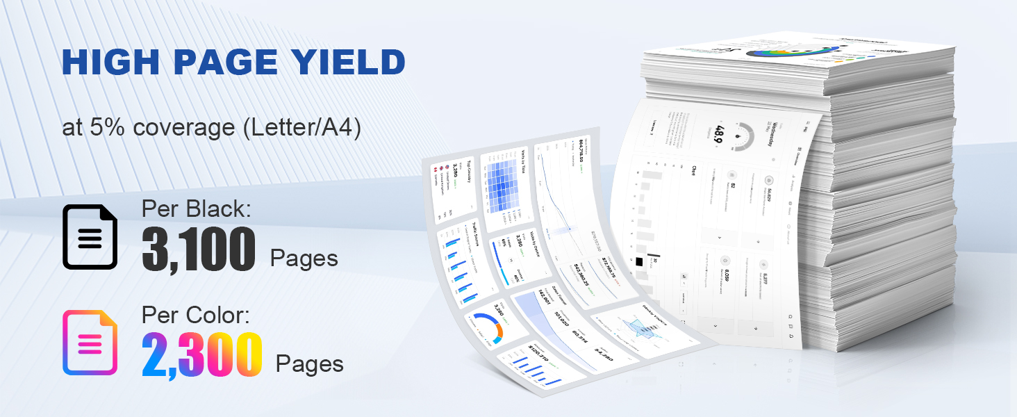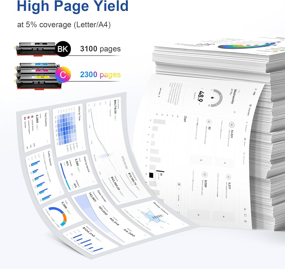 إنتاجية عالية للصفحة: 3100 صفحة لكل 054h 054 أسود، 2300 صفحة لكل 054054h لون (يعتمد على الطابعة والاستخدام)
