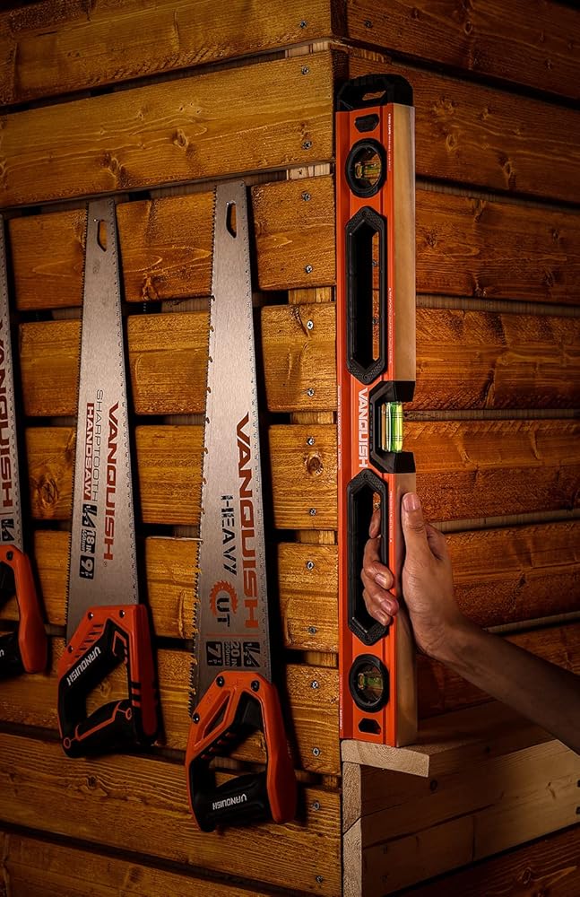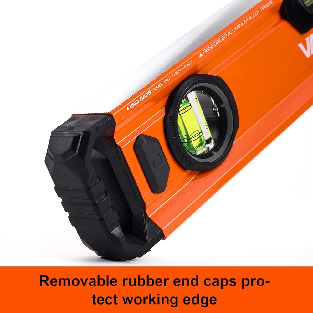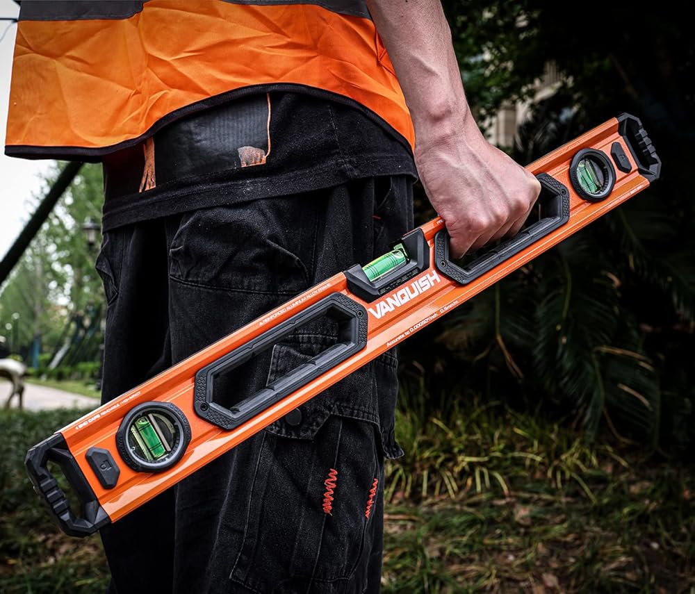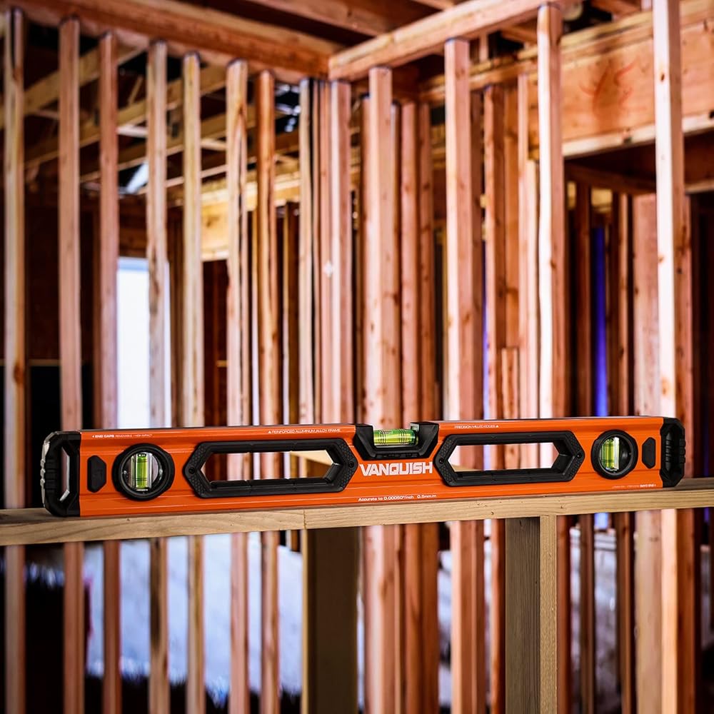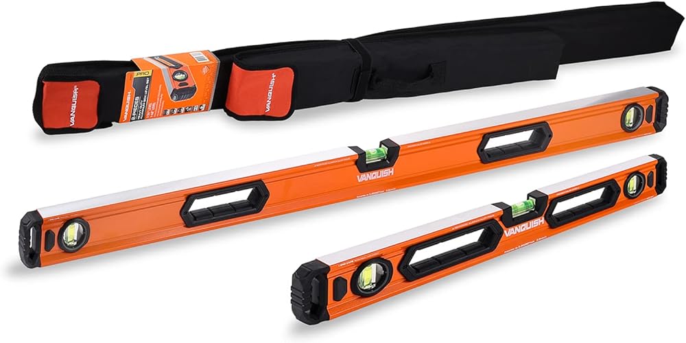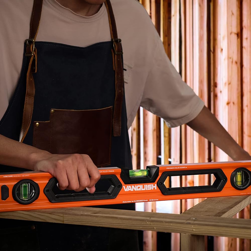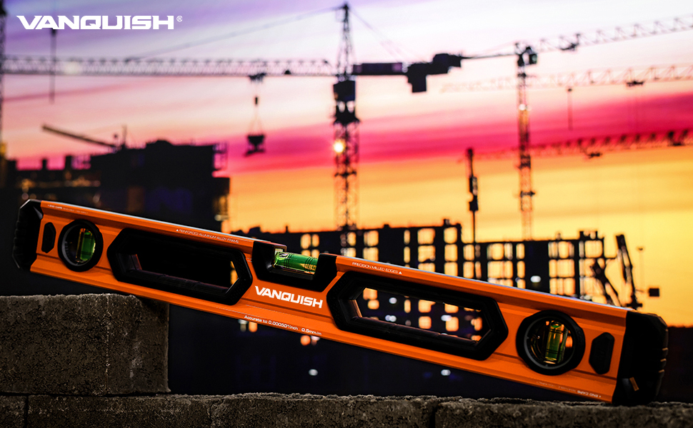 The VANQUISH 48-Inch and 24-Inch Aluminum Box Beam Level Set is designed for the ultimate durability. The wide and thick aluminum frame and rubber grips give you a good grip, making it ergonomic and comfortable. The shockproof acrylic block-vials provide accuracy of 0.0005"/inch or 0.5mm/m. This is a versatile tool for all measuring applications. It is a must-have for carpenters, builders, metalworkers, homeowners and DIY enthusiasts.