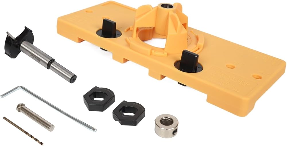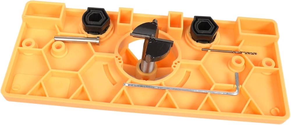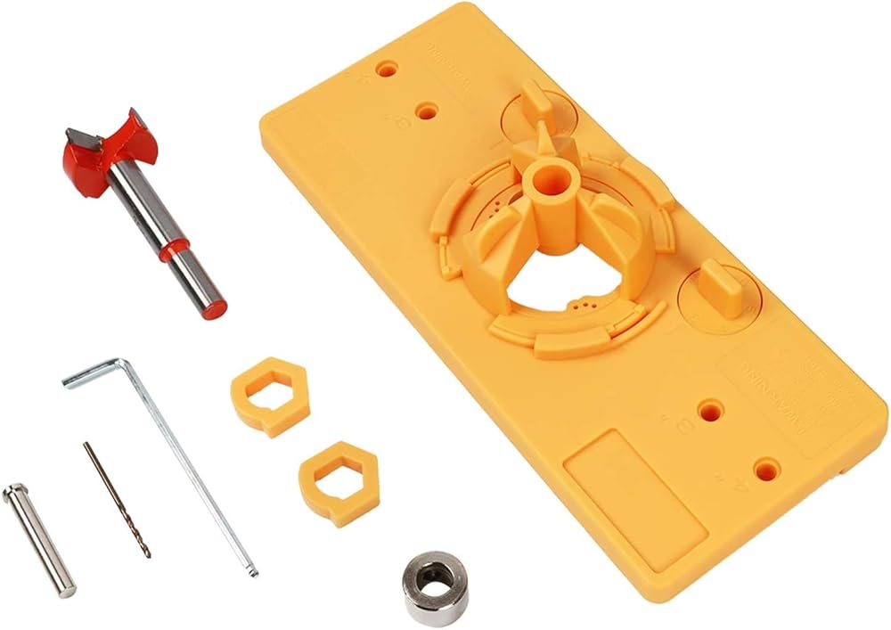 مصنوعة من البلاستيك الهندسي، وهي عبارة عن مجموعة من الأدوات الإرشادية لتثبيت المفصلات المخفية بدقة شديدة.
