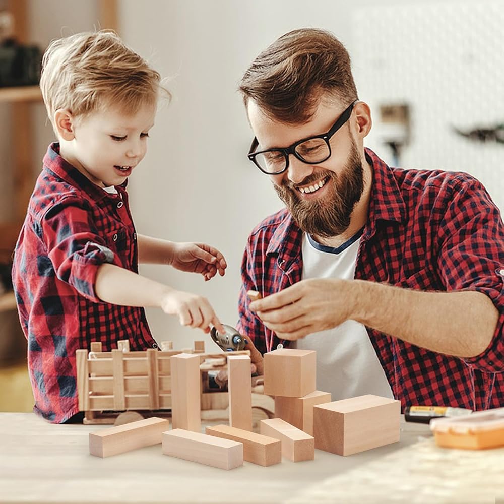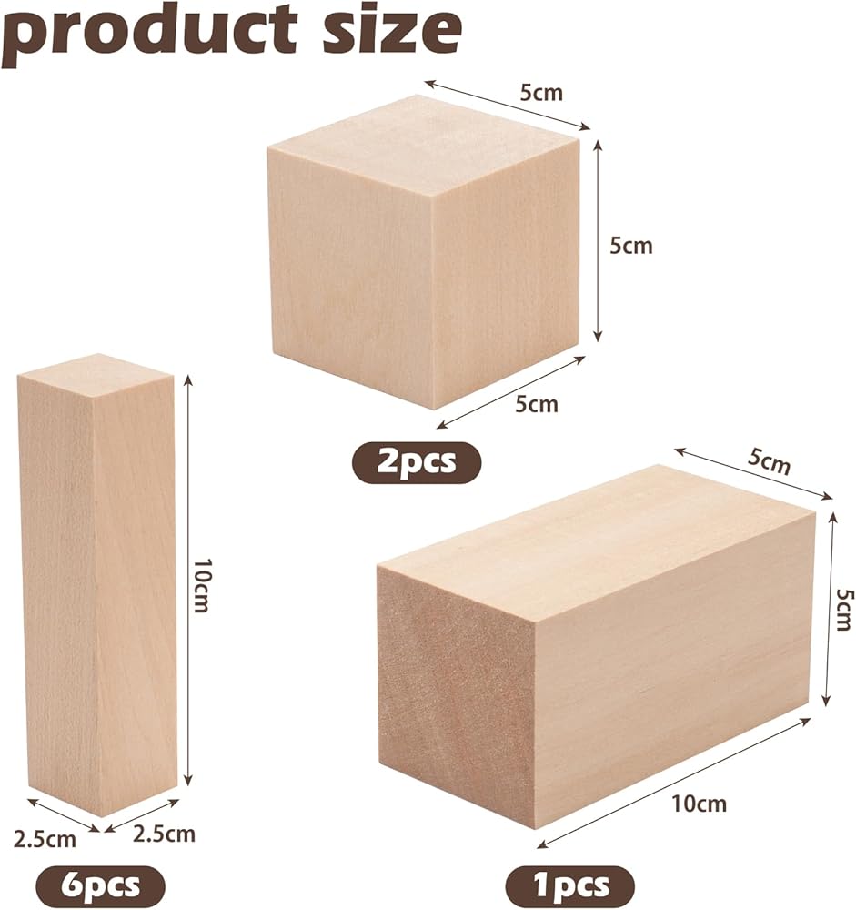 7 قطع مكعبات نحت خشبية بمقاسين----6 مكعبات مستطيلة صغيرة (1 بوصة × 1 بوصة × 4 بوصة)، وقطعة مستطيلة أكبر (2 بوصة × 2 بوصة × 4 بوصة)، مثالية لمجموعة متنوعة من الاستخدامات.