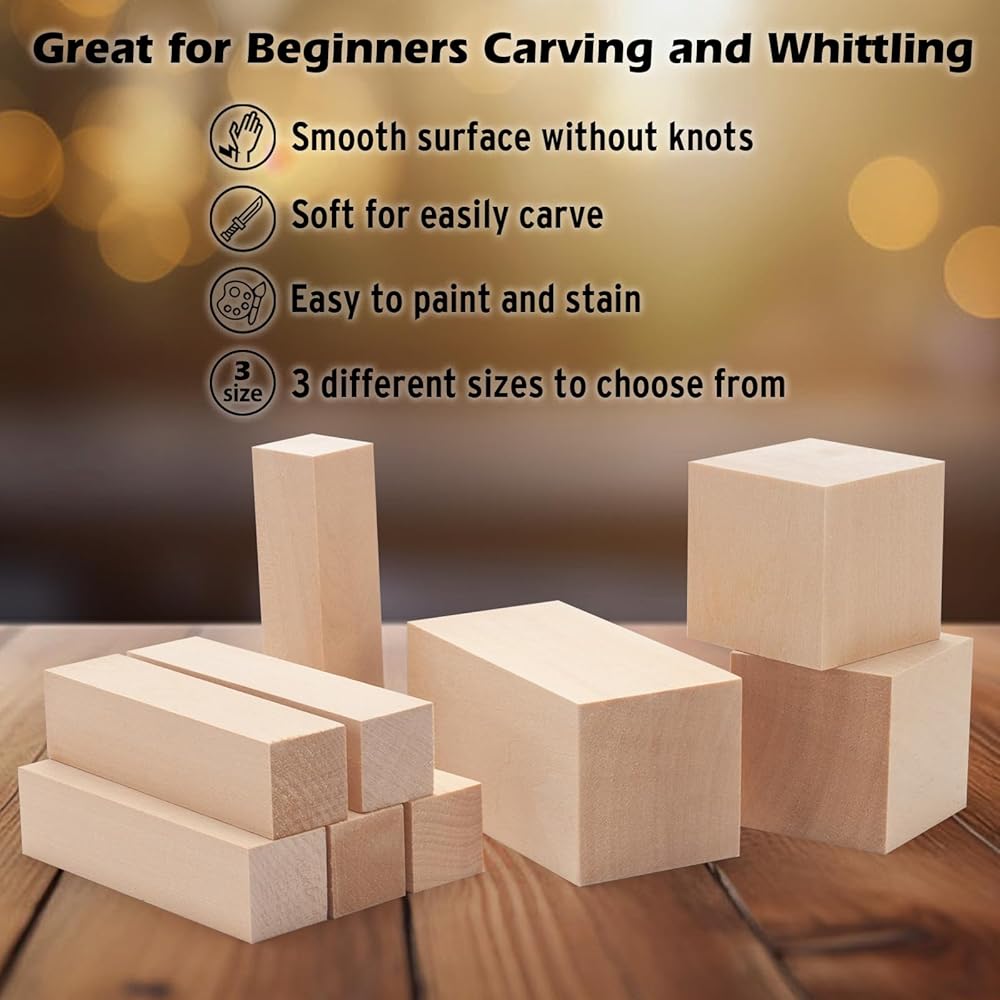 سهلة النحت----مكعبات نحت خشب الزيزفون ناعمة بشكل لا يصدق وسهلة العمل بها، رائعة للمبتدئين في النحت أو النحاتين الماهرين عند بدء مشروع جديد.
