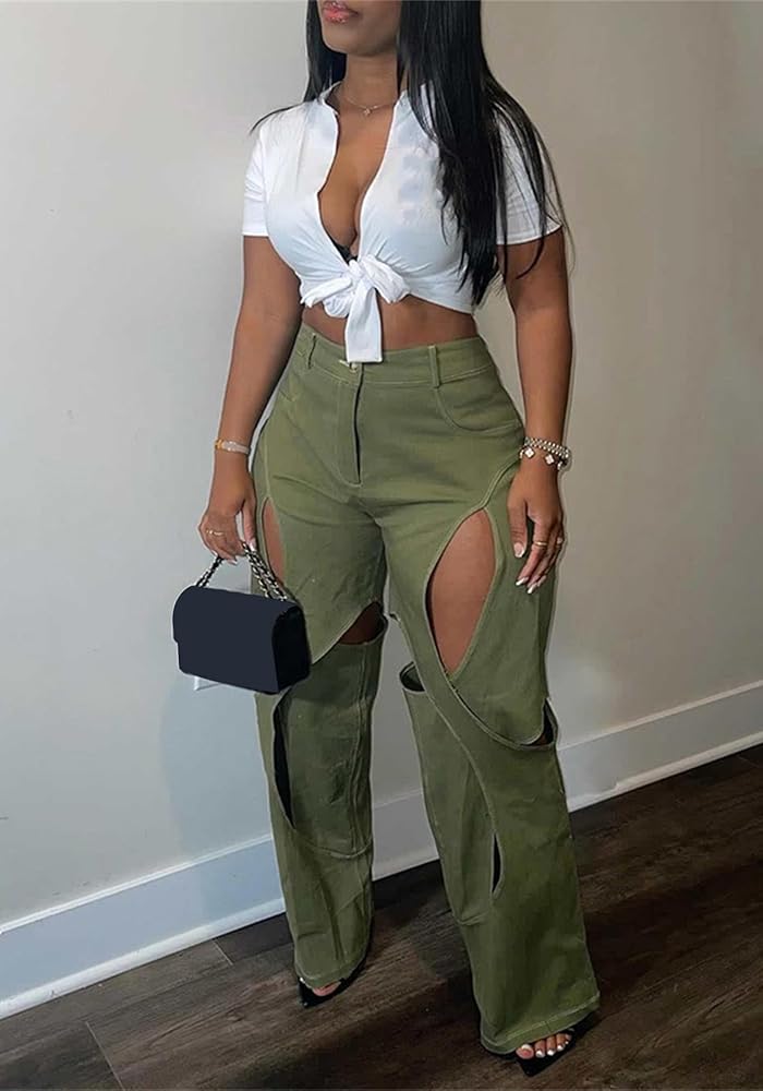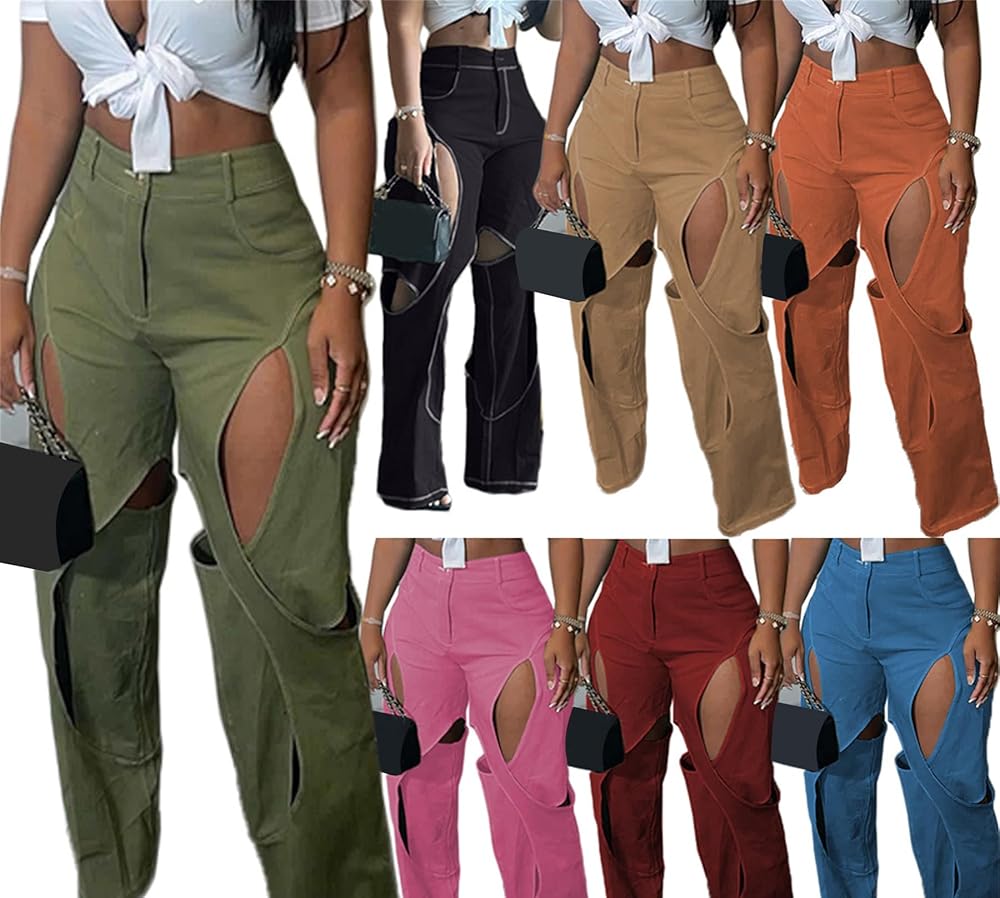 السراويل البضائع النسائية عالية الخصر التعب الجيش فضفاضة مستقيمة واسعة الساق السراويل التمويه الشارع الشهير