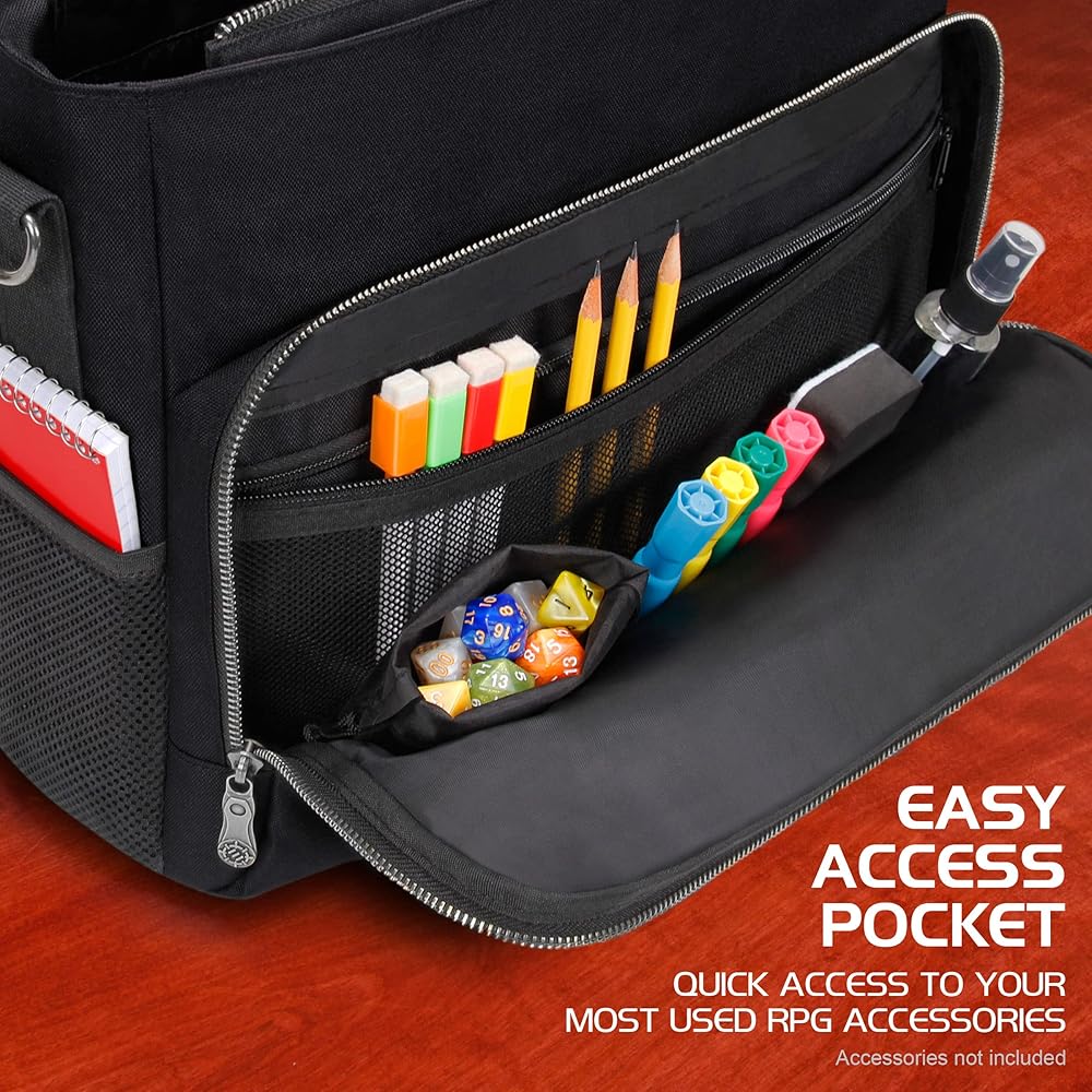 COLLECTOR EDITION RPG PLAYER'S DND BAG: Crossbody style messenger bag with room for 2 to 4 of your favorite RPG books, complete with a padded divider to organize binders, character sheets and more