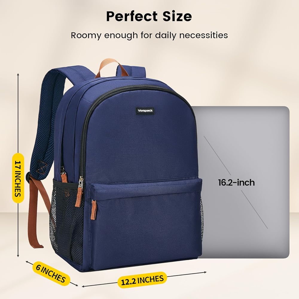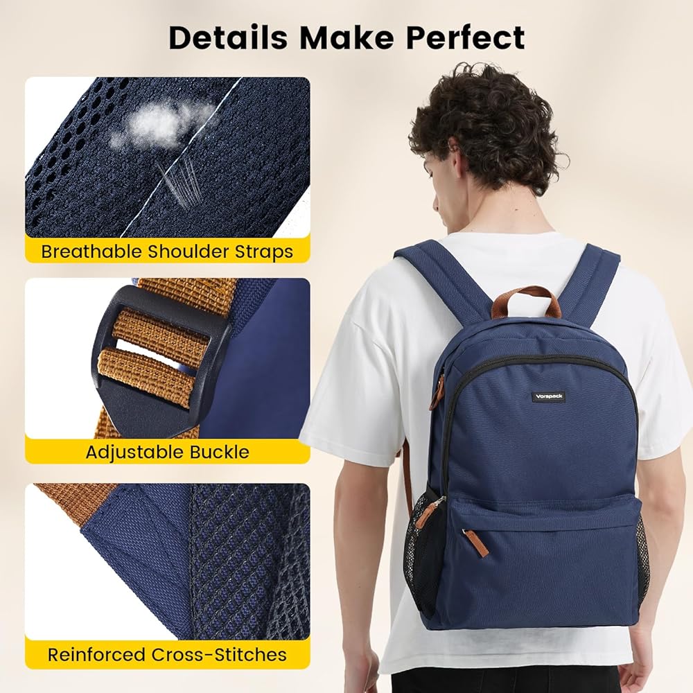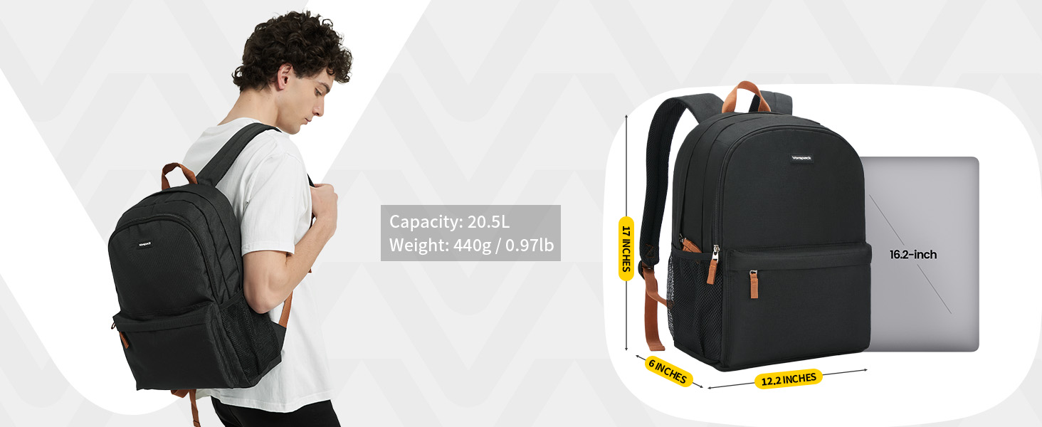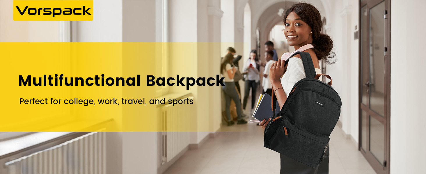 حقيبة ظهر كبيرة: حقيبة ظهر Vorspack سوداء بمقاس 17 × 12.2 × 6 بوصات، وهي واسعة بما يكفي لحمل ضرورياتك اليومية. تتميز حقيبة الكتب بأقسام وجيوب منفصلة، مما يسمح لك بالحفاظ على متعلقاتك منظمة بشكل أنيق