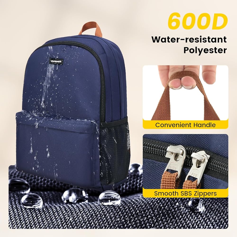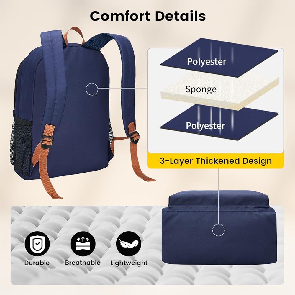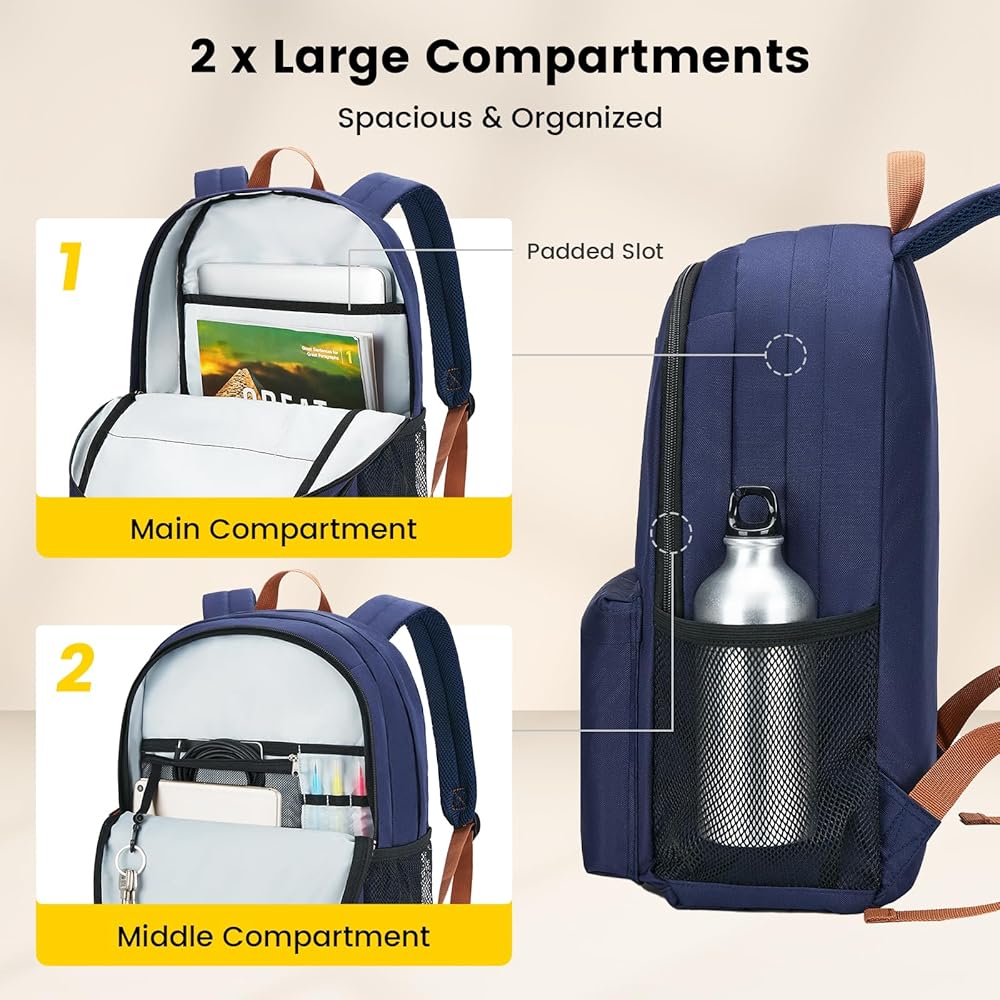 حقيبة كتب متعددة الجيوب: تحتوي حقيبة الظهر الجامعية هذه على مساحة رئيسية واسعة مع حقيبة مبطنة للكتب، وحجرة وسطية متوسطة مع جيب واحد بسحاب و3 فتحات للأقلام والمفاتيح. تحتوي الحقيبة أيضًا على جيب أمامي بسحاب لتنظيم الأغراض الصغيرة، بالإضافة إلى جيبين جانبيين لحمل زجاجة مياه ومظلة.