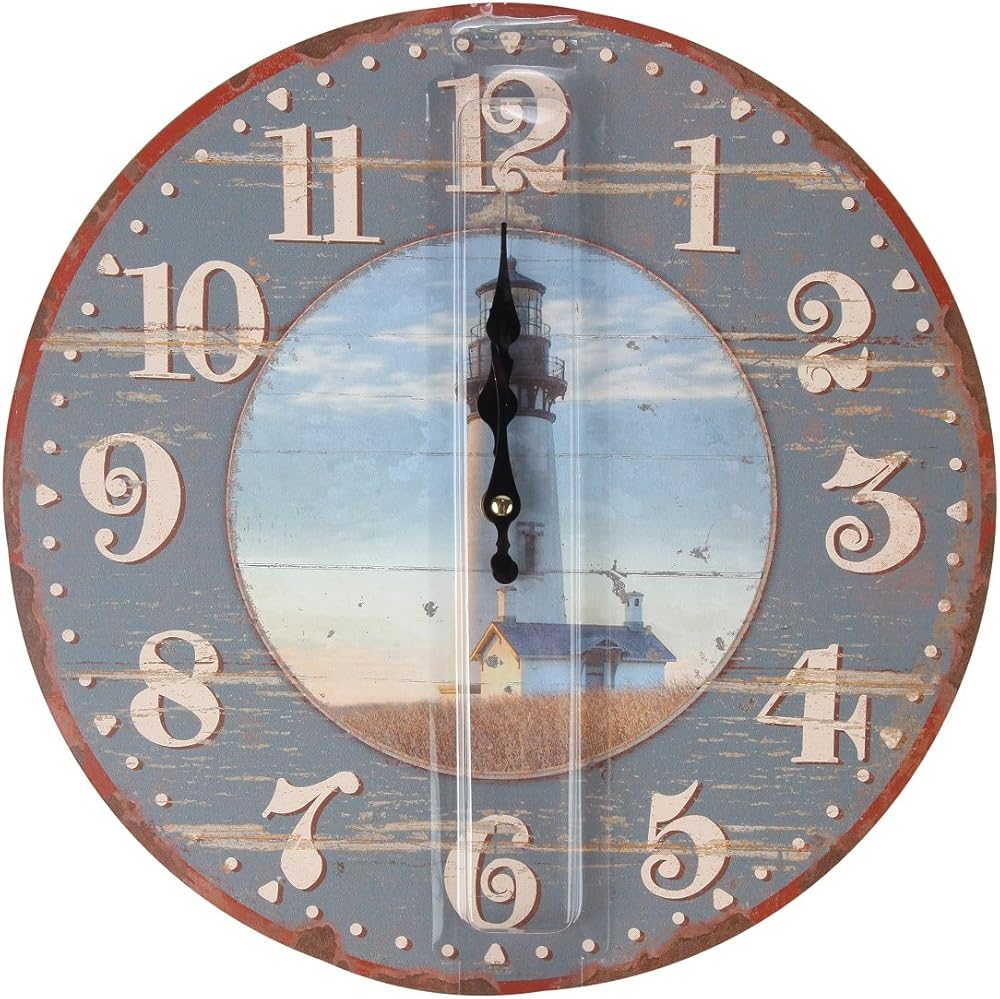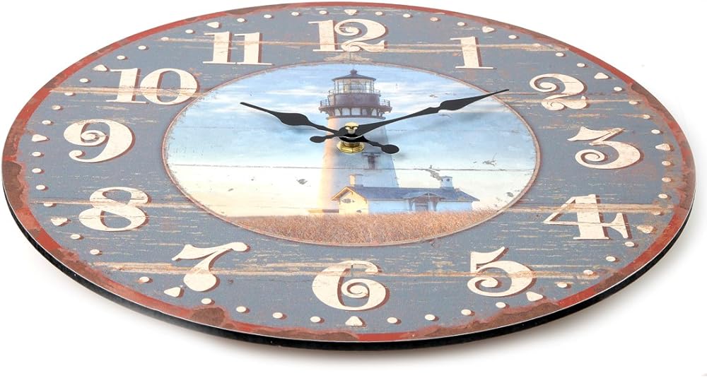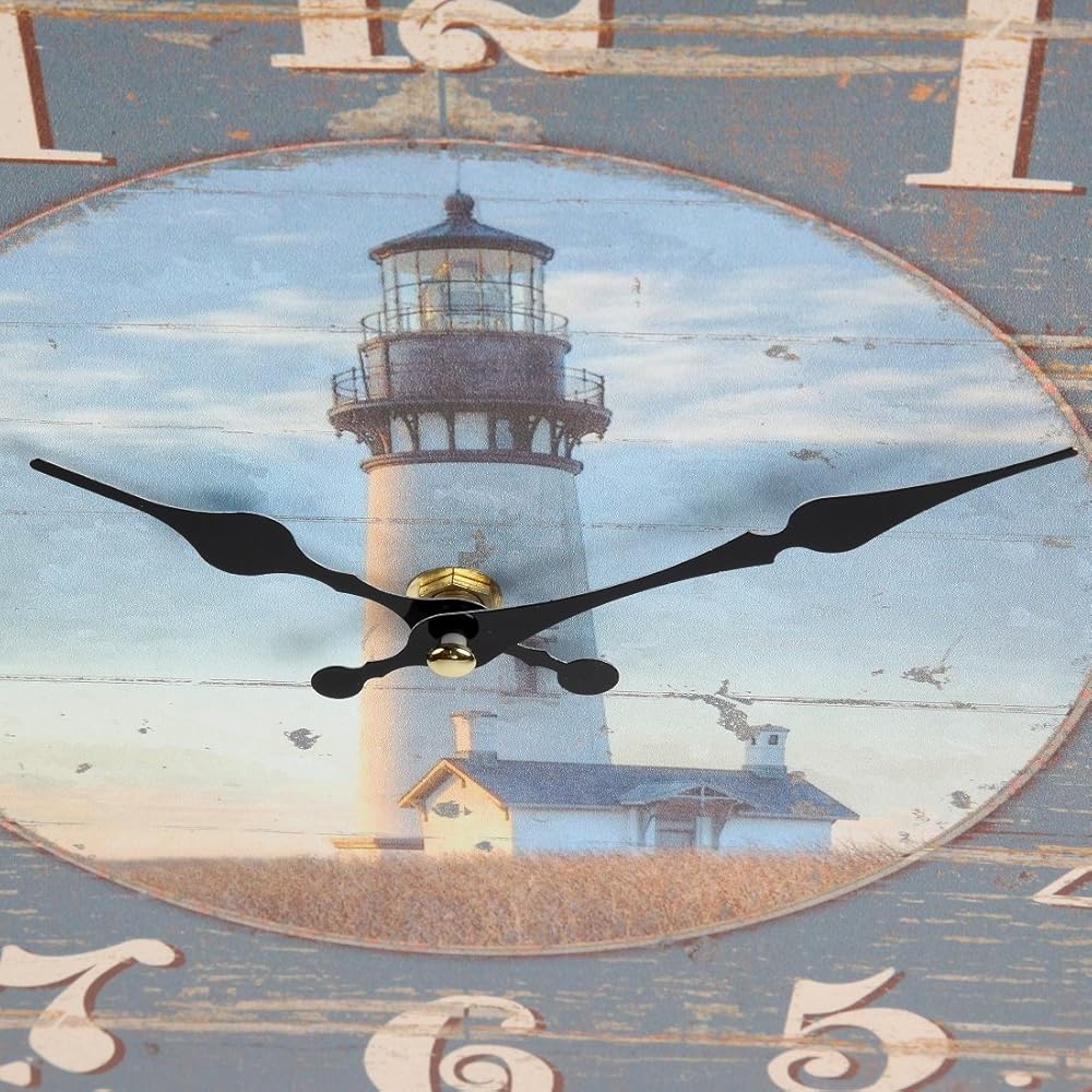 ساعة حائط منارة ريفية على الطراز الريفي من Lily's Home، تناسب ديكور بحري أو ريفي، تعمل بالبطارية مع حركة كوارتز، هدية مثالية لمحبي المنارة (قطر 13 بوصة)