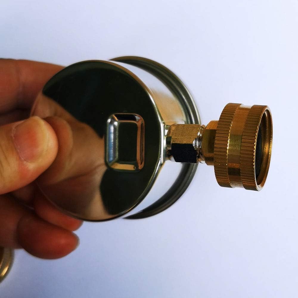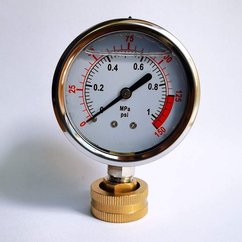 طقم قياس ضغط المياه من الفولاذ المقاوم للصدأ 304، نحاس خالٍ من الرصاص، قرص 2-1/2 بوصة، 0-150 رطل لكل بوصة مربعة (0-1.0 ميجا باسكال) مقياس مزدوج، مملوء بالجليسرين، خيط خرطوم حديقة 3/4 بوصة.