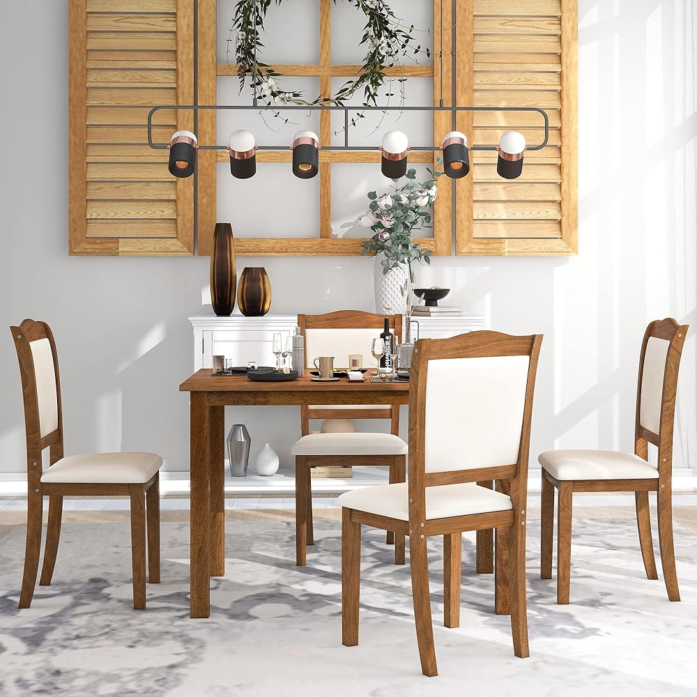 • Comfortable Seat: The elegant dining chairs with curved backrest and thick leather seat pads to promote comfort, giving you a comfortable seating experience. 250-pound weight capacity per chair.