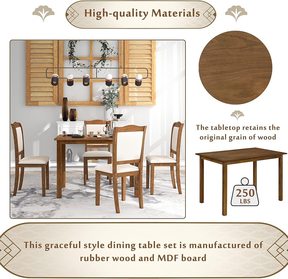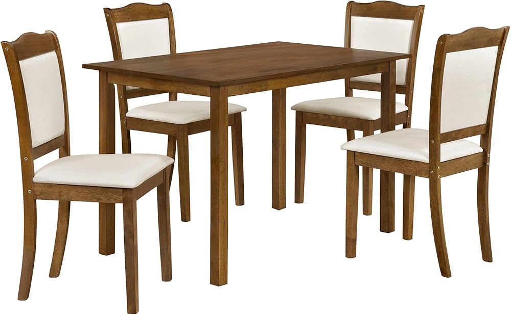 5، طاولة مستطيلة مع كراسي منجدة، مساحة خشبية، خشب الجوز، مجموعات المطبخ وغرفة الطعام المكونة من 4 قطع