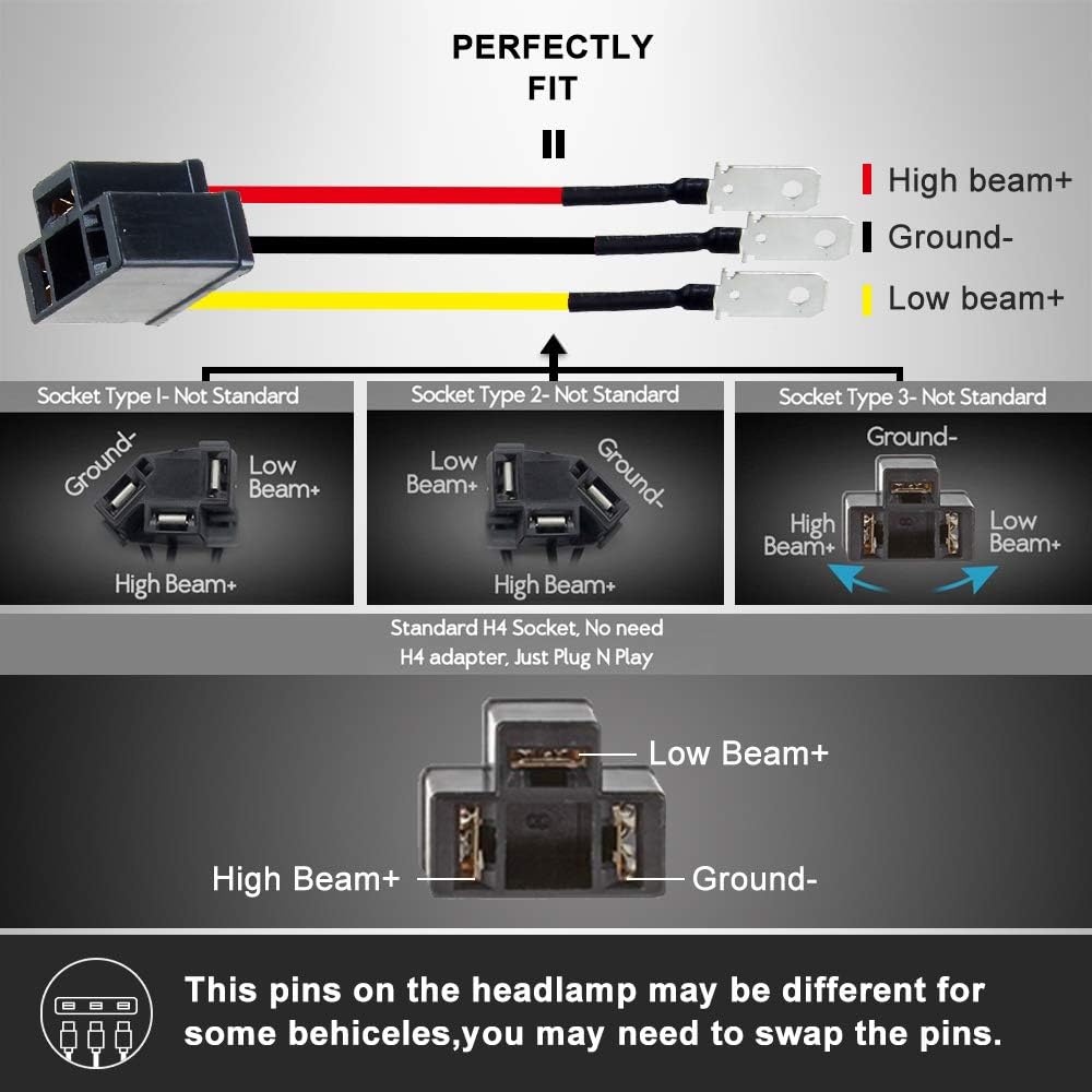 ملاءمة عالمية: هالة RGB للمصباح الأمامي SUNPIE 5x7 مصممة بمحول H4، مما يجعلها خيار التوصيل والتشغيل الذي يناسب جميع المركبات ذات مقابس 6014/H6052/H6054/ 6054/H5054/H6054LL/69822/6052/6053. وهو متوافق مع جيب شيروكي XJ (1984-2001)، وجيب رانجلر YJ (1987-1995)، وجيب كومانش MJ (1986-1992)، بالإضافة إلى موديلات جي إم سي ذات المصابيح الأمامية 5x7 بوصة، بما في ذلك Savana Safari K3500 K2500 K1500 GMC C2500 .