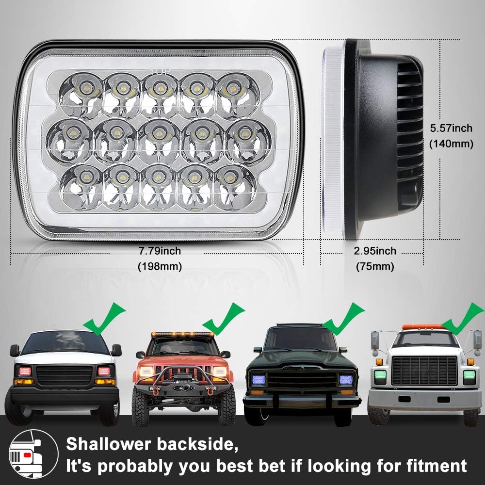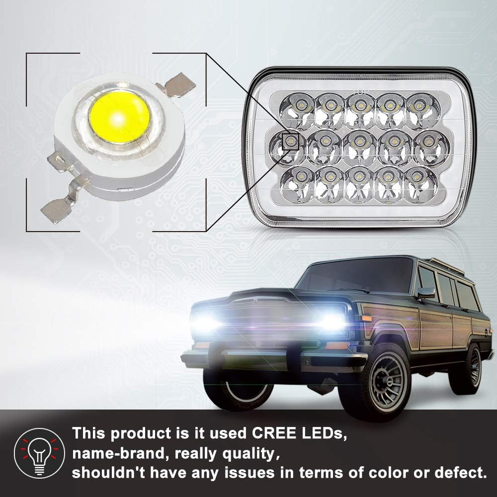 مجموعة المصابيح الأمامية SUNPIE متوافقة مع جيب شيروكي XJ Wrangler YJ Ford Chevy GMC Toyota Nissan Dodge، مصباح أمامي 5X7/7X6 مع RGB Halo DOT معتمد مع مصابيح أمامية عالية منخفضة الشعاع ومقاومة للماء
