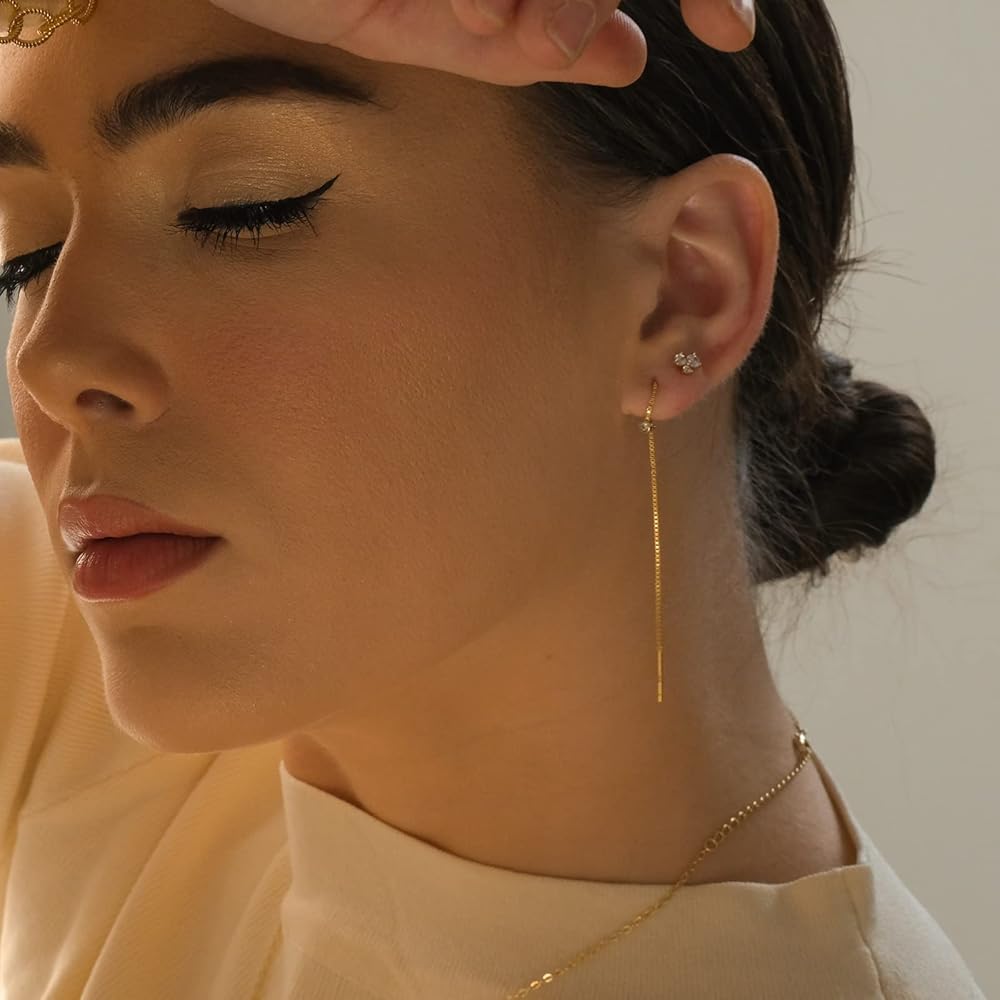 أقراط تشيكوسلوفاكيا عراف | تتدلى أقراط زركونيا الحد الأدنى | أقراط سلسلة قصيرة فريدة من نوعها