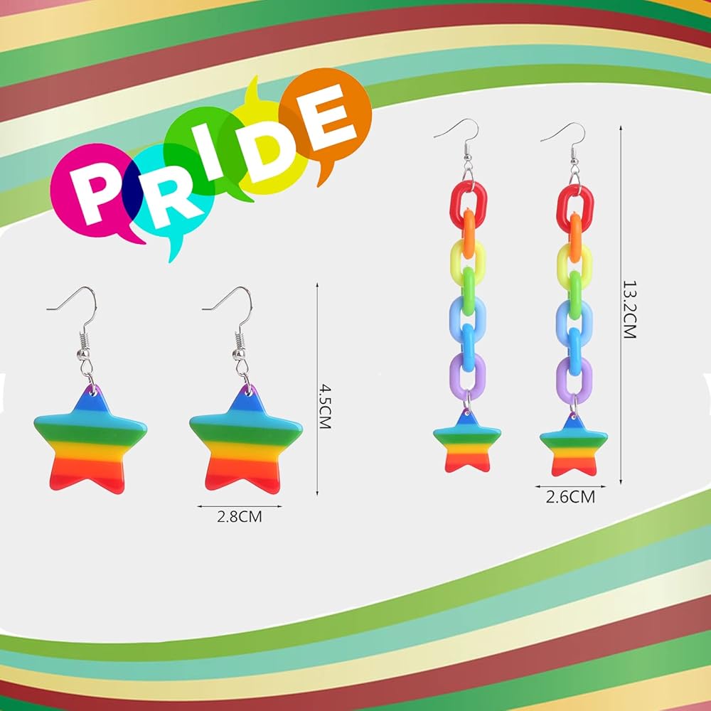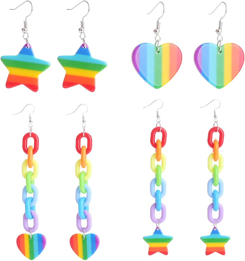 أقراط فخر للنساء والرجال أقراط متدلية بألوان قوس قزح على شكل قلب ونجمة قوس قزح مجموعة أقراط متدلية الحب يفوز مجوهرات فخر للنساء والفتيات والرجال (أ)