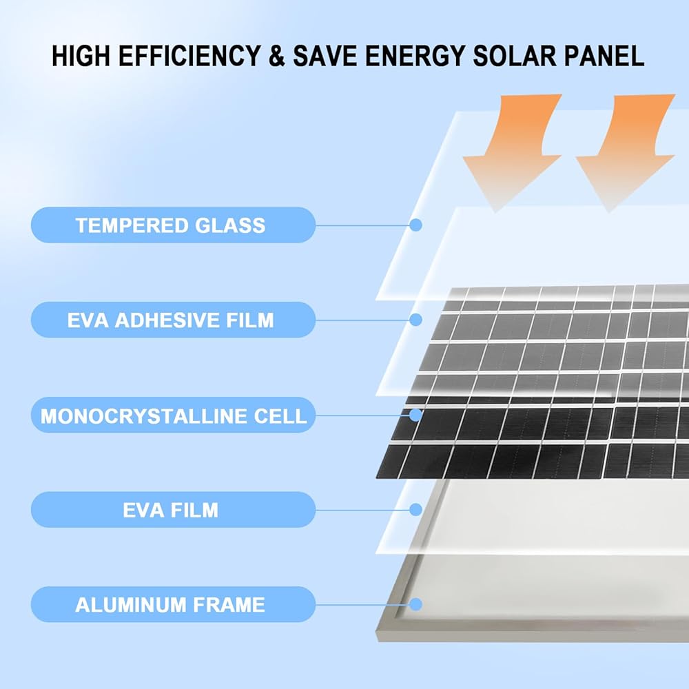 لوحة شمسية عالية الكفاءة لتدفق هواء قوي: تم تجهيز المروحة التي تعمل بالطاقة الشمسية LazyElf بلوحة شمسية عالية الكفاءة تلتقط ضوء الشمس وتحوله إلى تدفق هواء قوي. يمكن لمراوح الطاقة الشمسية تدوير الهواء بسرعة 2000 دورة في الدقيقة، مع حجم هواء يبلغ 326 قدم مكعب في الدقيقة، وضوضاء منخفضة تبلغ 36 ديسيبل.
