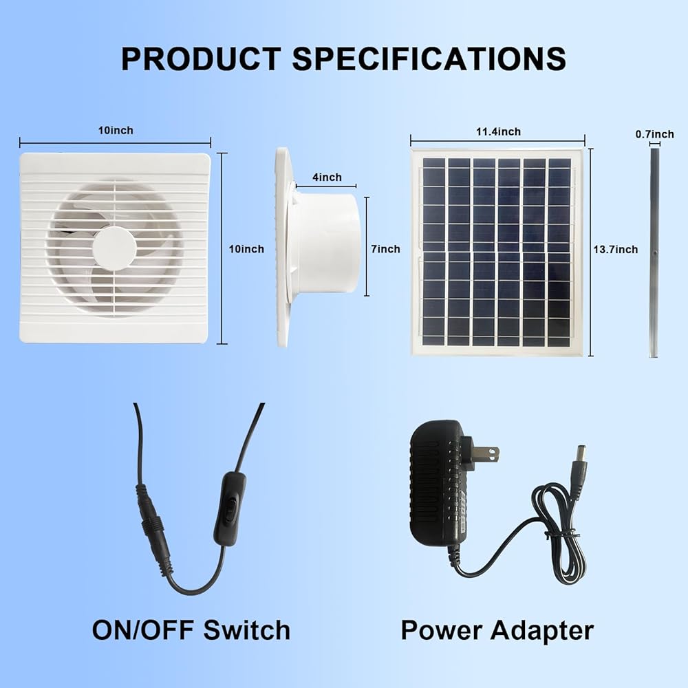 تطبيق واسع: تعتبر مروحة العادم الشمسية مقاس 10 بوصة مثالية للحفاظ على دوران الهواء في مناطق مثل الحمام والمطبخ والمستودع والسقيفة وبيت الحيوانات الأليفة والمرآب والعلية. إنه مفيد بشكل خاص في الأماكن التي تتراكم فيها العناصر، مما يضمن بيئة مريحة وجيدة التهوية.