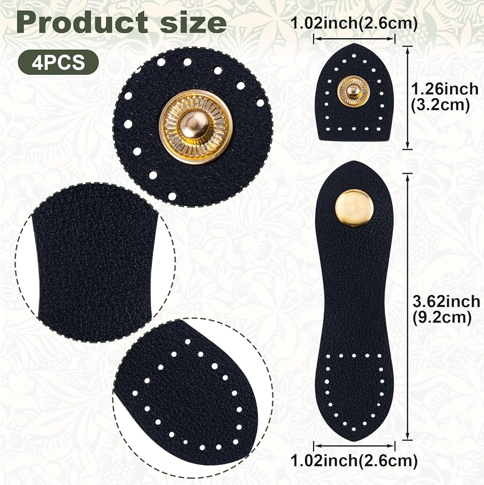 Various Colors: These sew on leather snap closure are in 4 colors: black, light brown, white, khaki. 1 Set each color. You can choose different colors to match your bags and cases.
