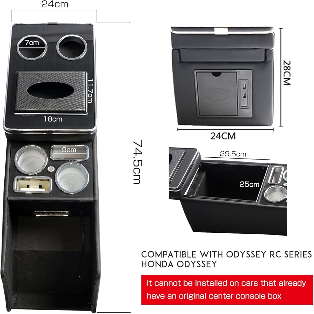 YESHMA متعدد الوظائف مسند ذراع السيارة منظم وحدة التحكم المركزية متوافق مع Honda Odyssey 2016-2019 مع حاوية شحن لاسلكية، مصابيح LED، حاملات المشروبات، منافذ USB ولاعات السجائر
