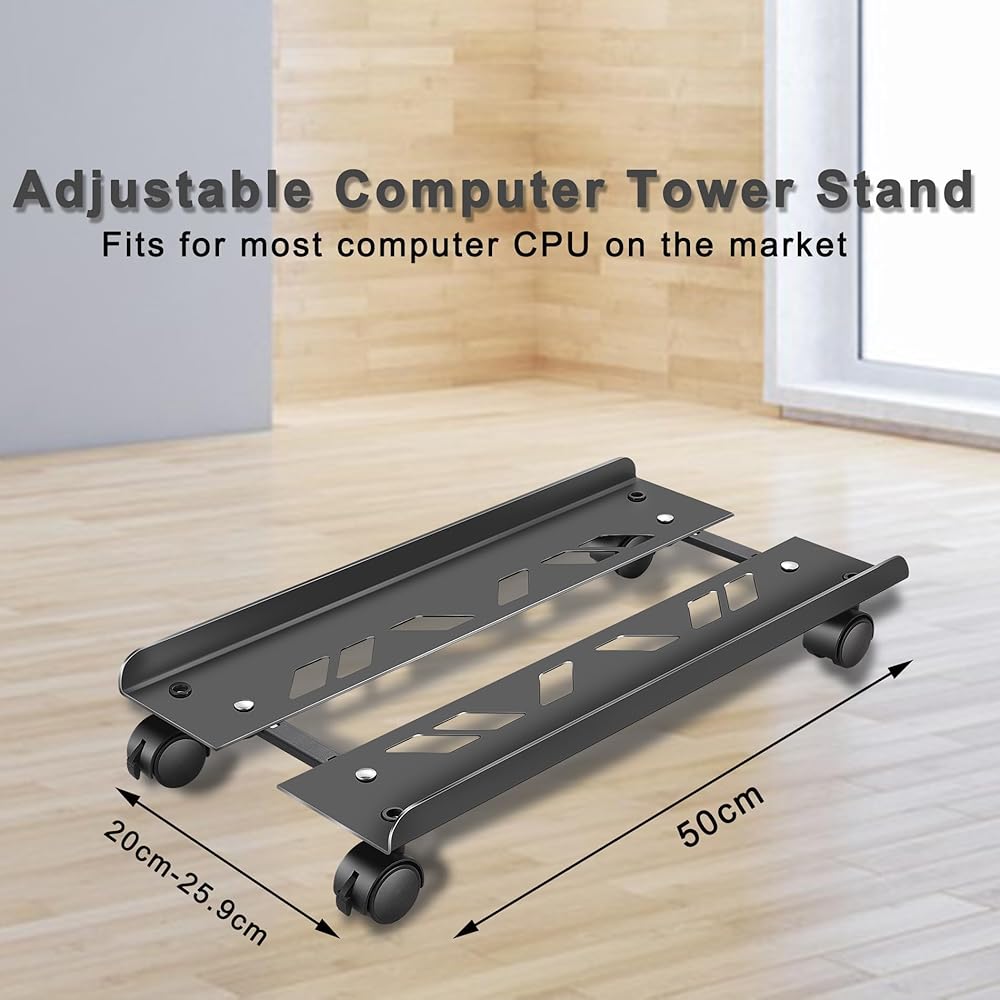الطول والعرض القابل للتعديل: حجم حامل وحدة المعالجة المركزية قابل للتعديل، نطاق العرض قابل للتعديل: 7.9-10.2 بوصة/20-25.9 سم، الطول: 19.7 بوصة/50 سم، مما يسمح له باستيعاب معظم وحدة المعالجة المركزية للكمبيوتر في السوق