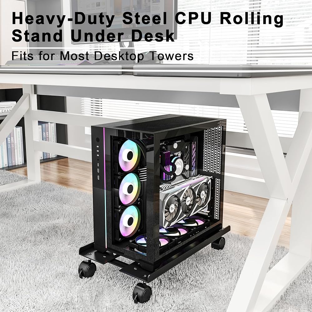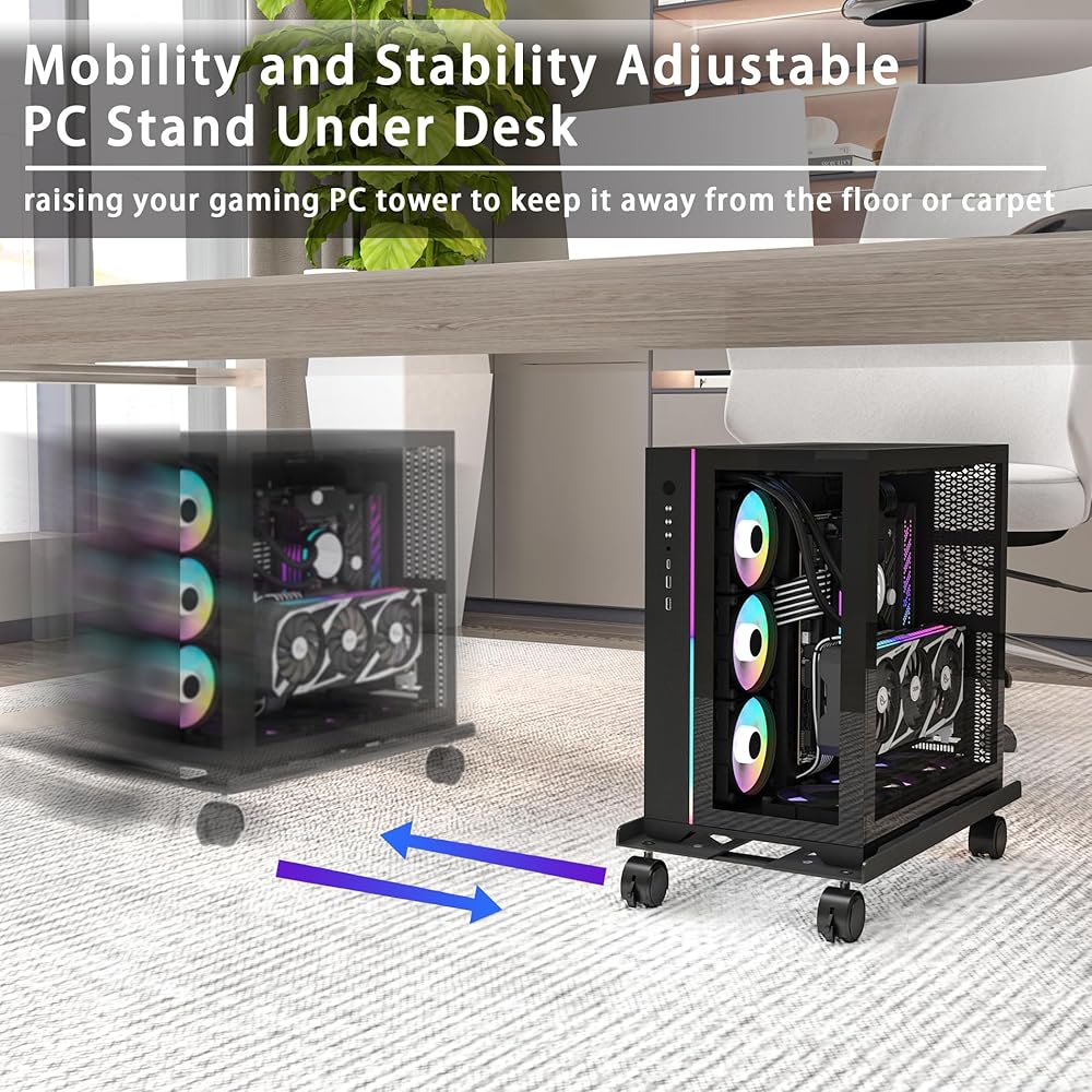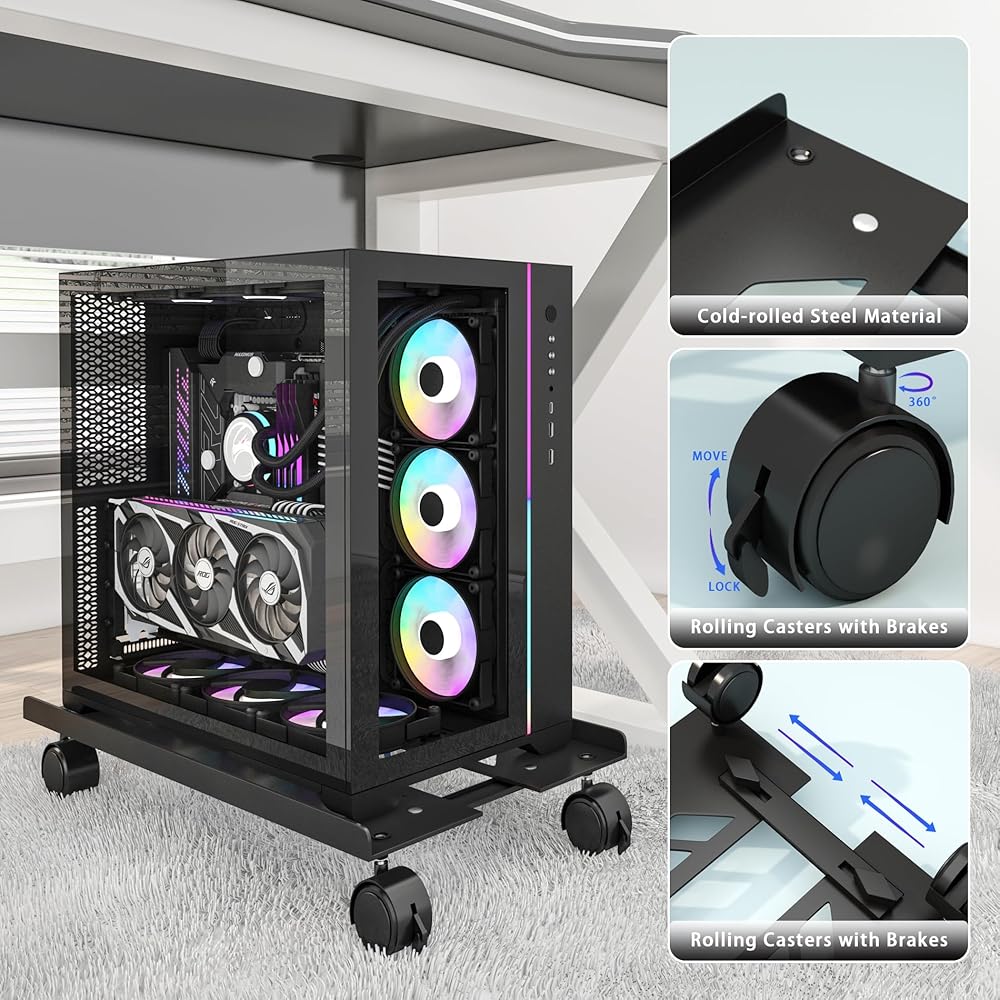 حامل برج الكمبيوتر المعدني، حامل وحدة المعالجة المركزية المحمول القابل للتعديل، حامل الكمبيوتر الصلب شديد التحمل مع 4 عجلات دوارة، حامل برج تحت المكتب، حامل الكمبيوتر الشخصي على الأرض للألعاب، برج الكمبيوتر المكتبي