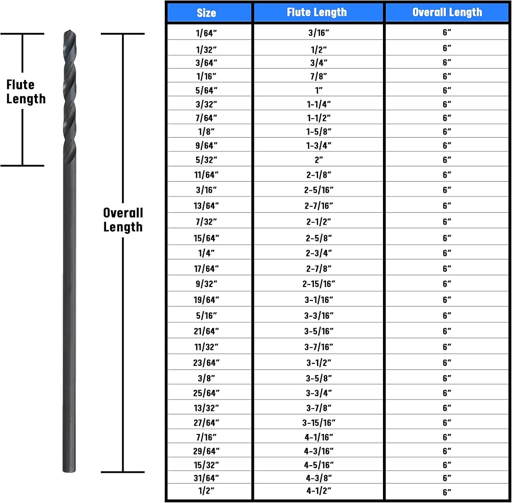 يتم تصنيع لقمة الحفر الفولاذية عالية السرعة من سلسلة Drill America DWDA/C وفقًا لمعيار الفضاء الجوي الوطني 907. 135 نقطة انقسام تتمركز ذاتيًا وتقلل من الدفع. مثالية للحفر في الفولاذ الطري حيث يتطلب الأمر طولًا إضافيًا للوصول. تتميز بمعالجة سطحية بأكسيد أسود مقاوم للتآكل، ويقلل من لحام الرقائق ويحسن تدفق الرقائق.