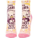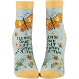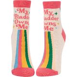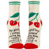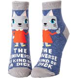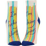 BASICALLY PSYCHIC Women's Ankle Socks from Blue Q. Fit women's shoe size 5 to 10. Woven from 51% nylon for strength, 47% soft, luxurious combed cotton, and 2% spandex for long-lasting fun. Imported. They measure 9.5"h x 3.25"w.