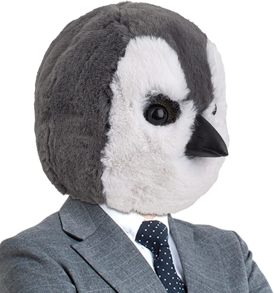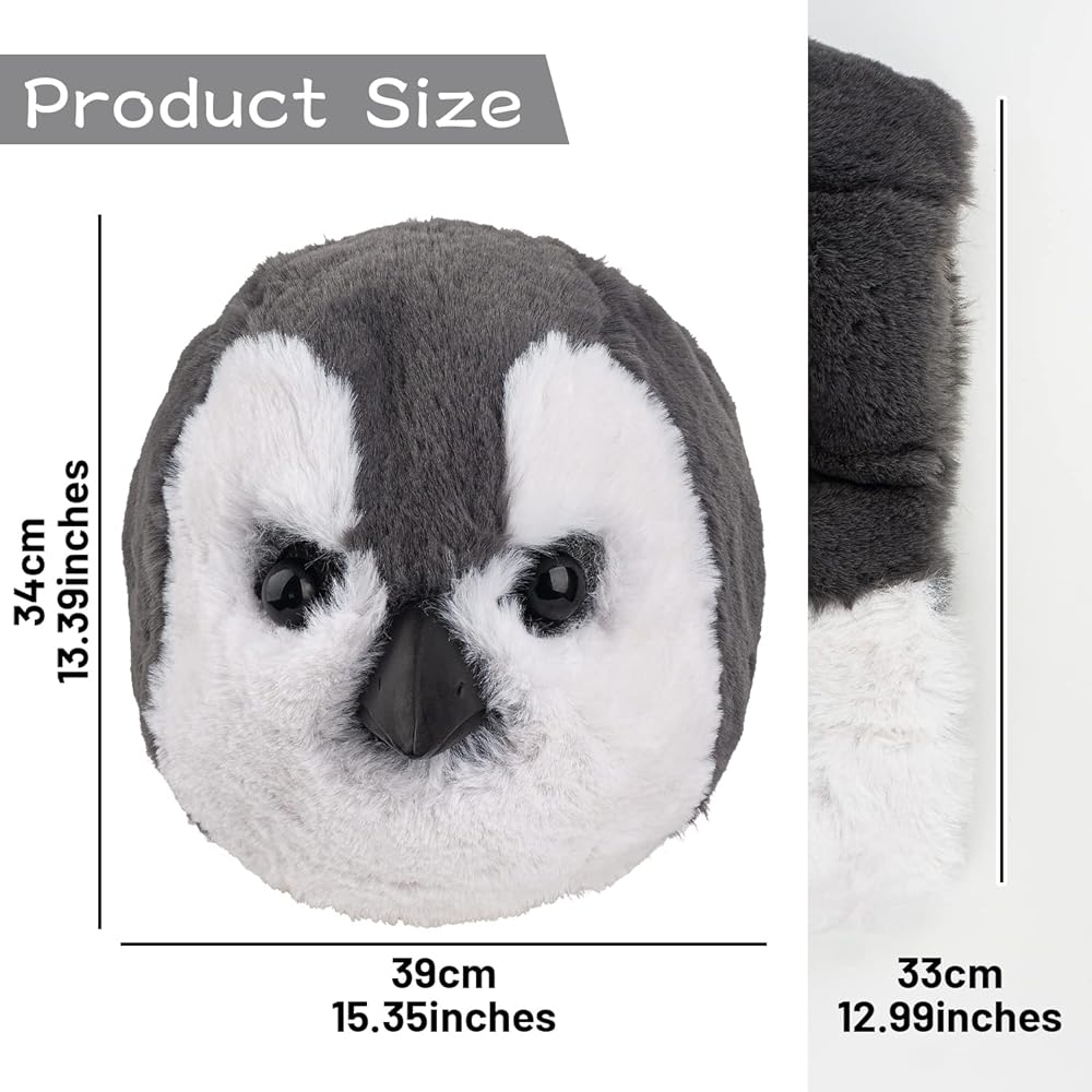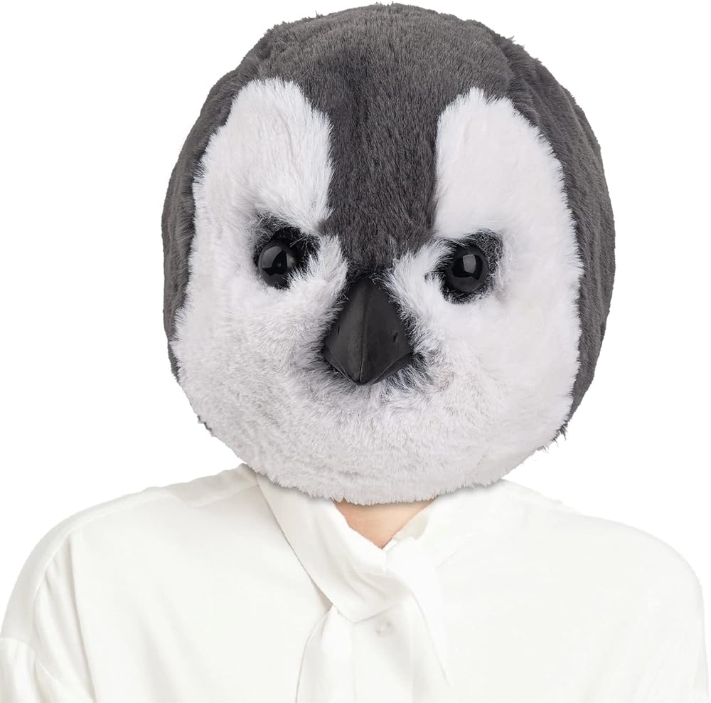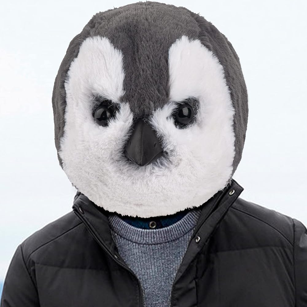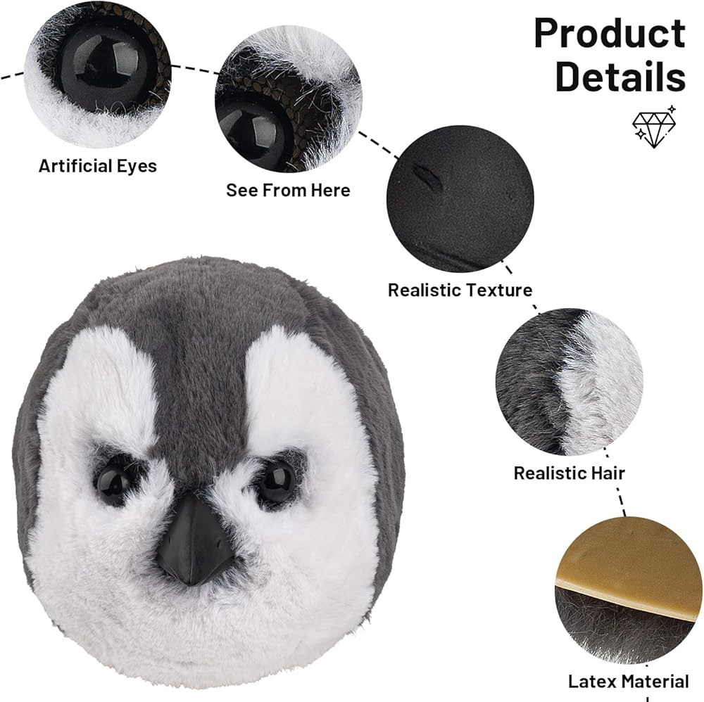 قناع البطريق اللطيف من PartyHop باللون الرمادي من اللاتكس على شكل حيوان من اللاتكس برأس كامل وأقنعة واقعية زي تنكري لحفلات الهالوين وحفلات الكرنفال