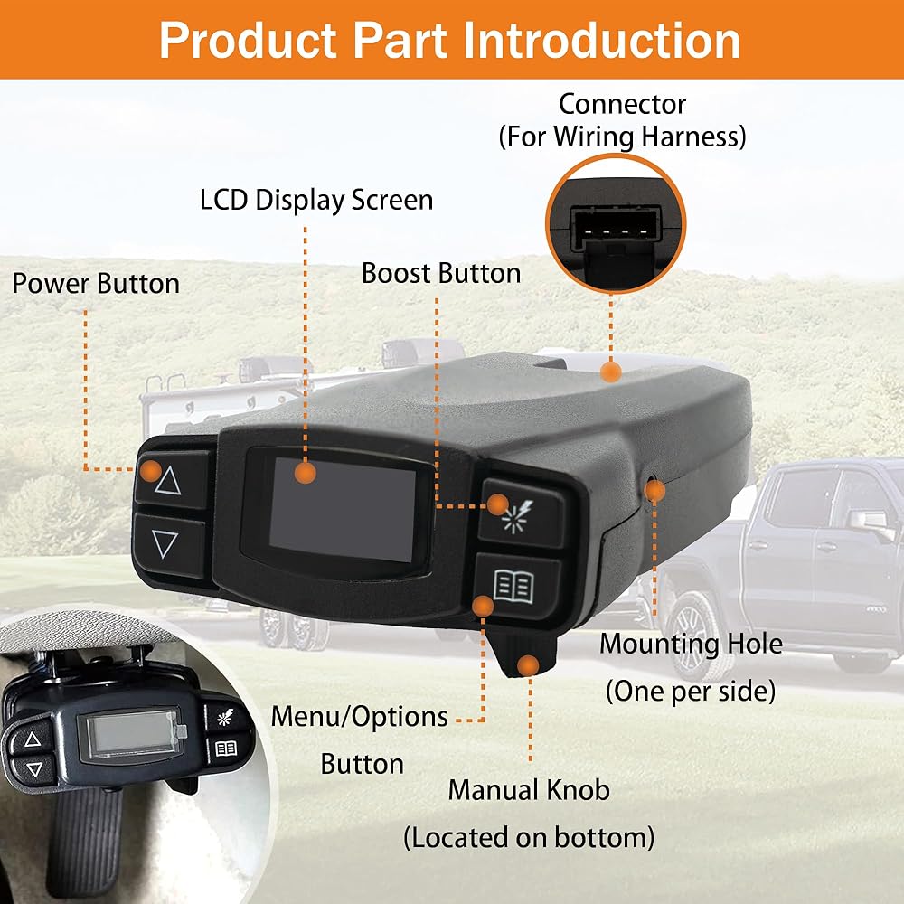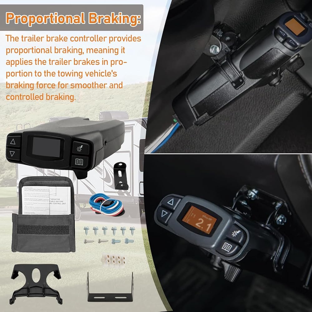 ✅The brake controller features a digital display that shows various information, including brake voltage output, diagnostics, and error codes. Supports English, Spanish, French.