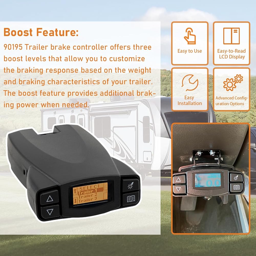✅The 90195 brake controller offers three brake modes to customize brake response based on the weight of the trailer.