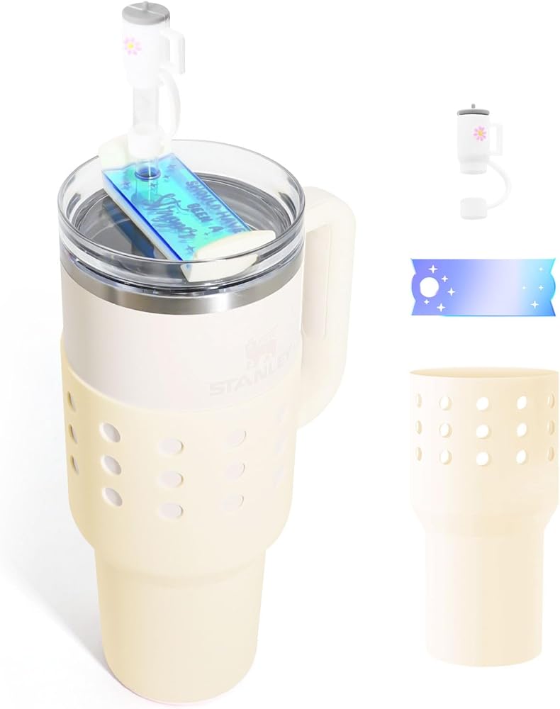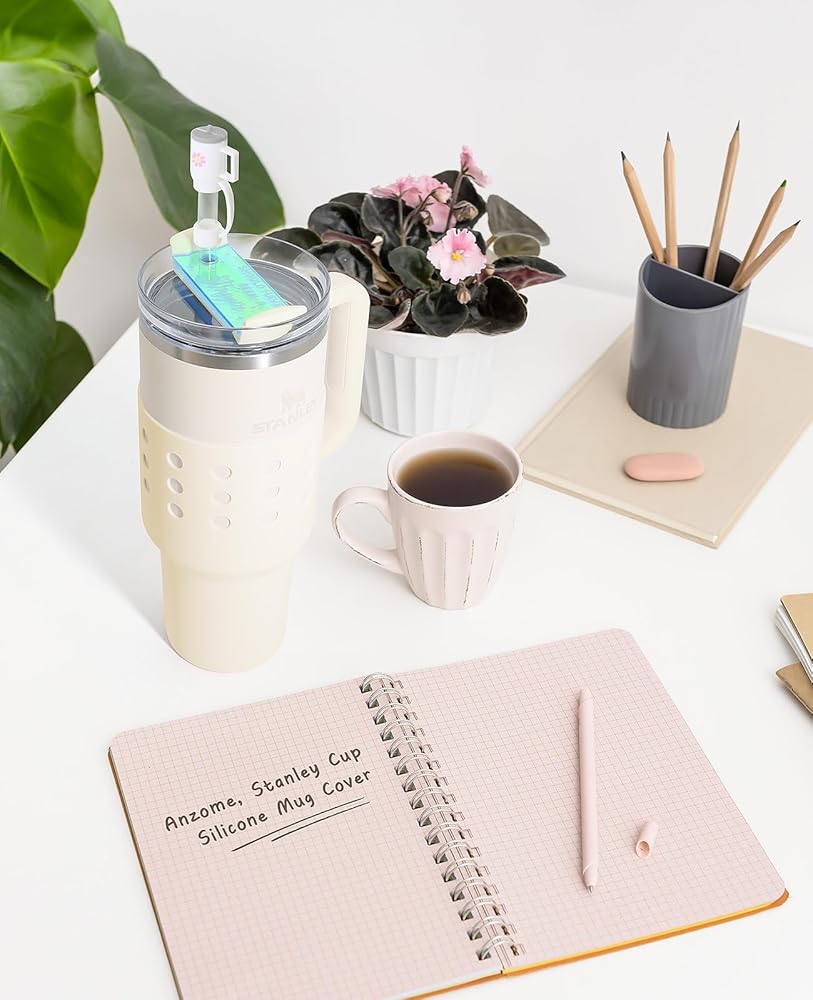 • SAFE MATERIAL: The mug protector is made of soft and flexible silicone rubber, BPA free, food grade, odorless, reusable and durable. It is safe to use for Stanley's cups every day. Dishwasher safe for young and old. Purchase ANZOME Stanley Cup Accessory, which includes 1 Stanley Cup Cover, 1 Stanley Straw Cover and a Name Tag Piece!