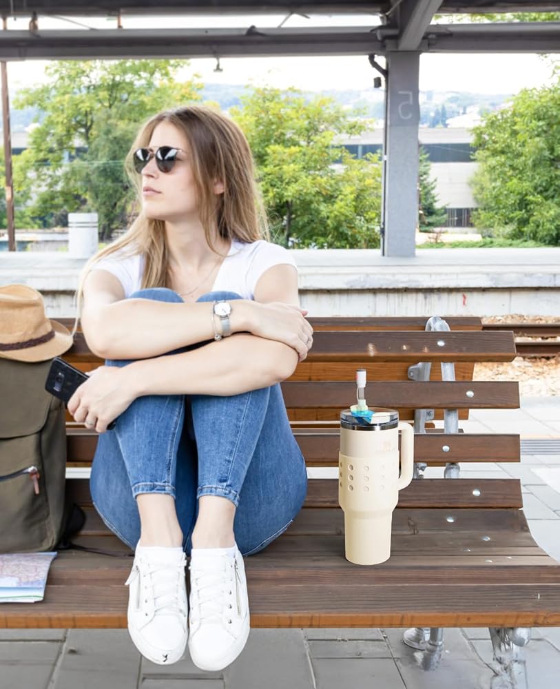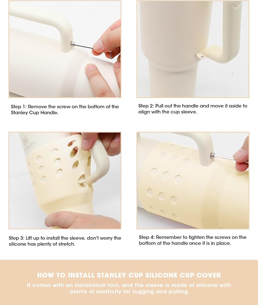 • PERFECT COMPATIBILITY: The mug cover fits the Stanley Adventure Quencher 40 oz. It is made precisely to the size of the original cup, fits perfectly to the bottom of the cup and will not come off easily. Still worried about the bottom of your favorite stainless steel water bottle breaking or scratching? Or embarrassed by the clinking sound your water bottle makes on the table? This Stanley Mug Cover protects the bottom of your water bottle from dents, scratches, slips and noises.
