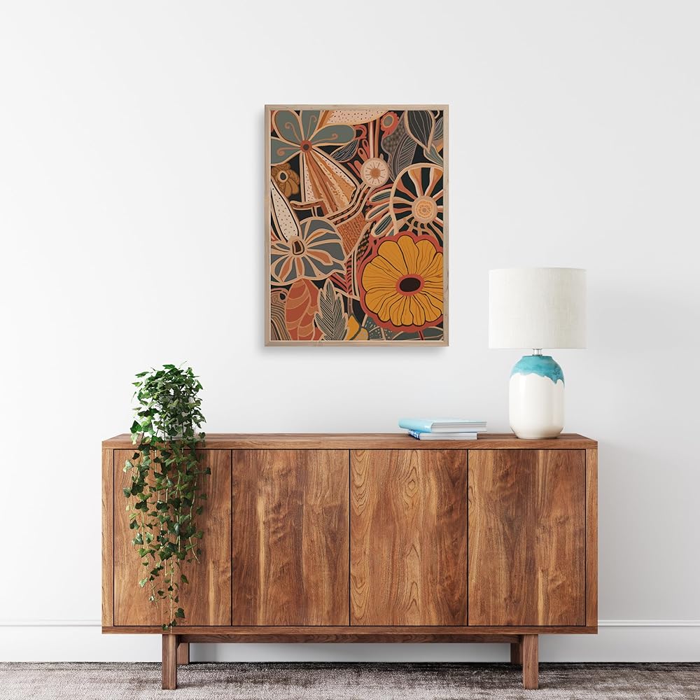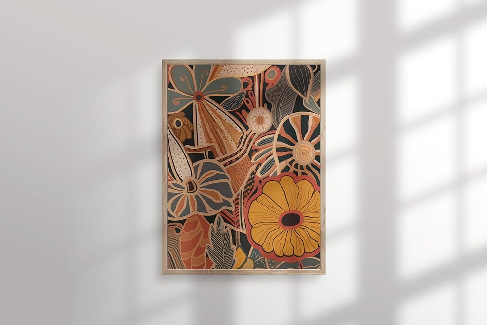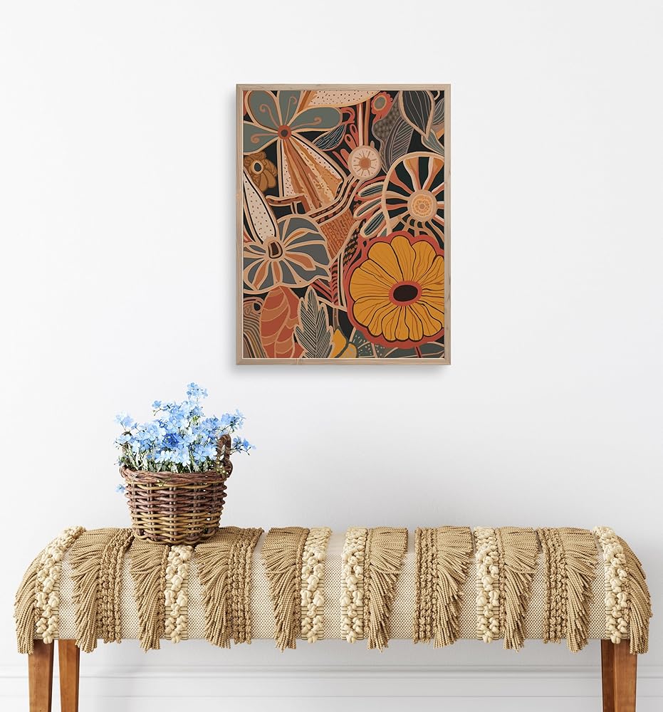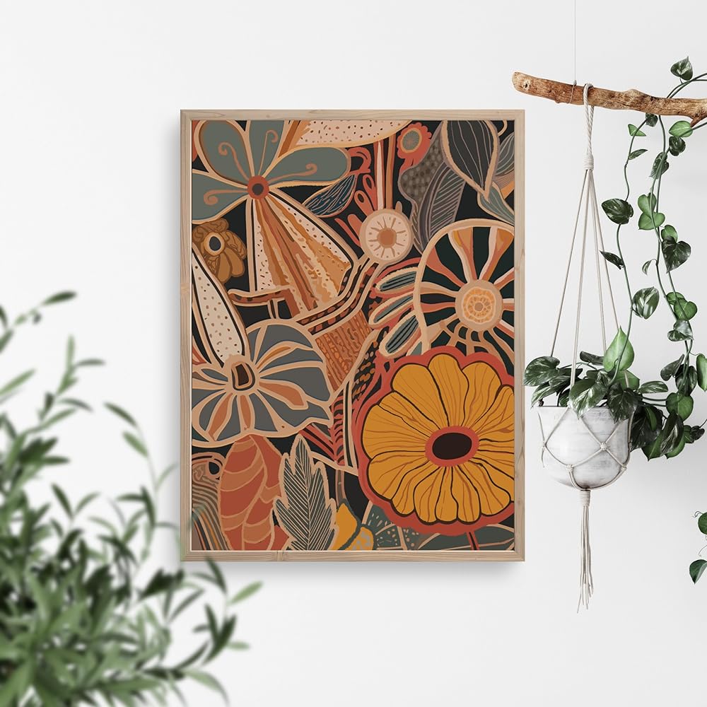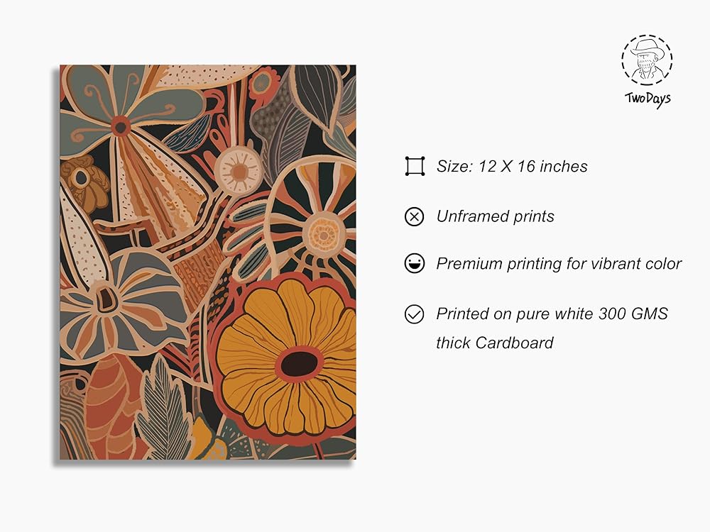 ديكور حديث في منتصف القرن من TwoDays، فن جداري لباقة زهور لغرفة المعيشة، ملصق زهور مجردة لغرفة النوم، مطبوعات فنية نباتية بلون أسمر بوهو. (12 بوصة × 16 بوصة، بدون إطار)
