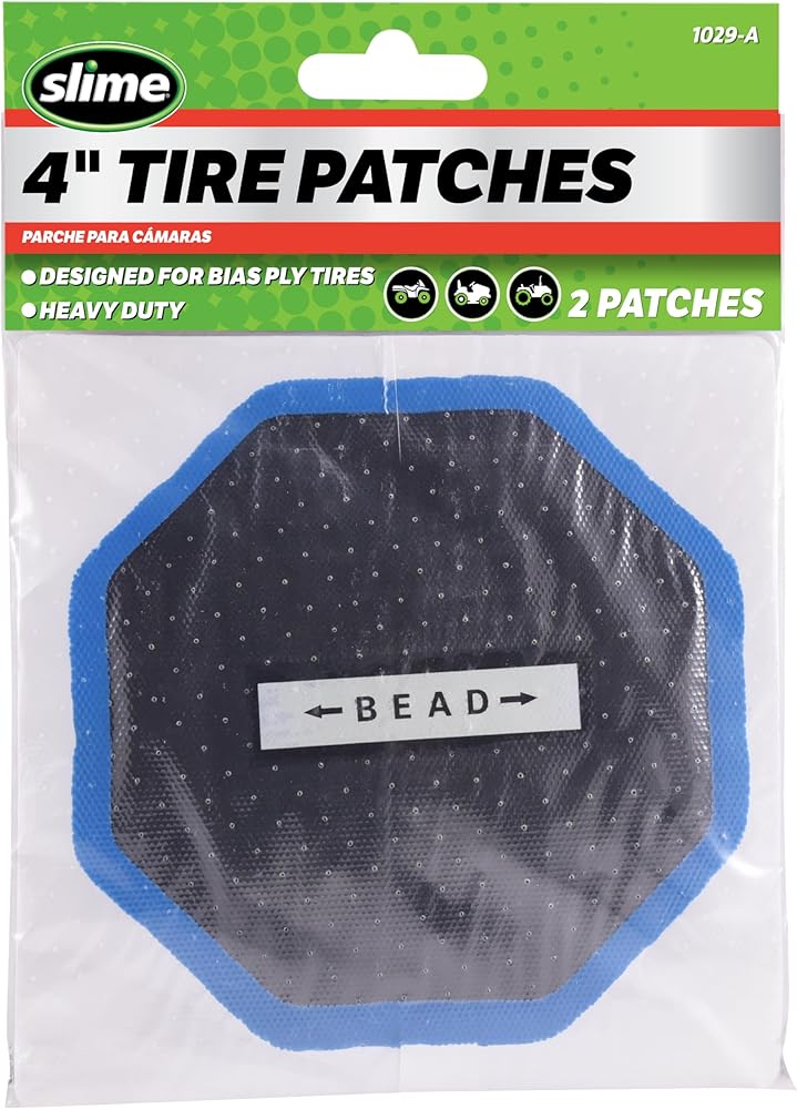 Slime's Heavy Duty Bias Ply Tire Patch is designed to repair large puncture-related flats on ATVs, mowers, trailers, and wheelbarrows. Patch your tires with the trust of the brand known for flat tire prevention and repair.