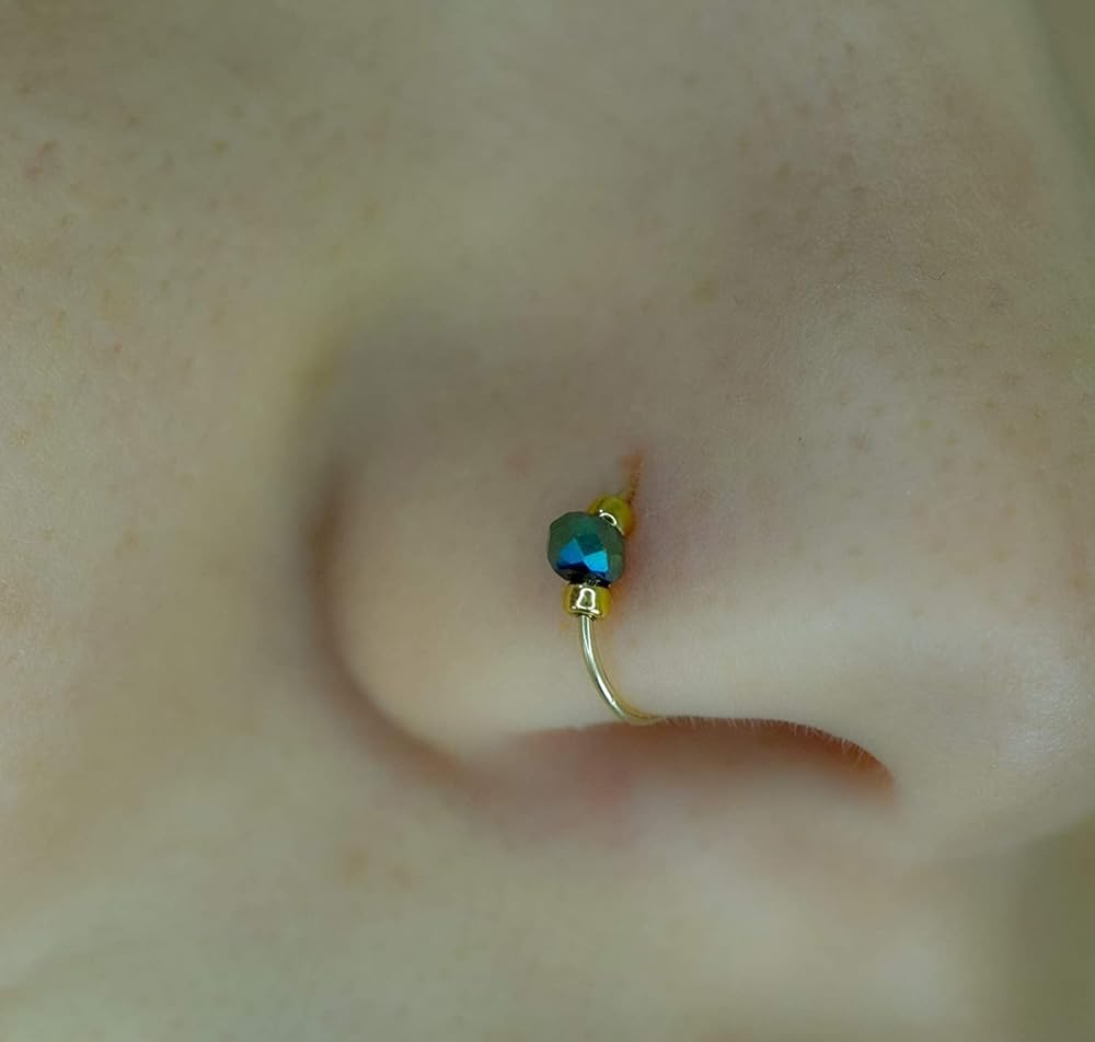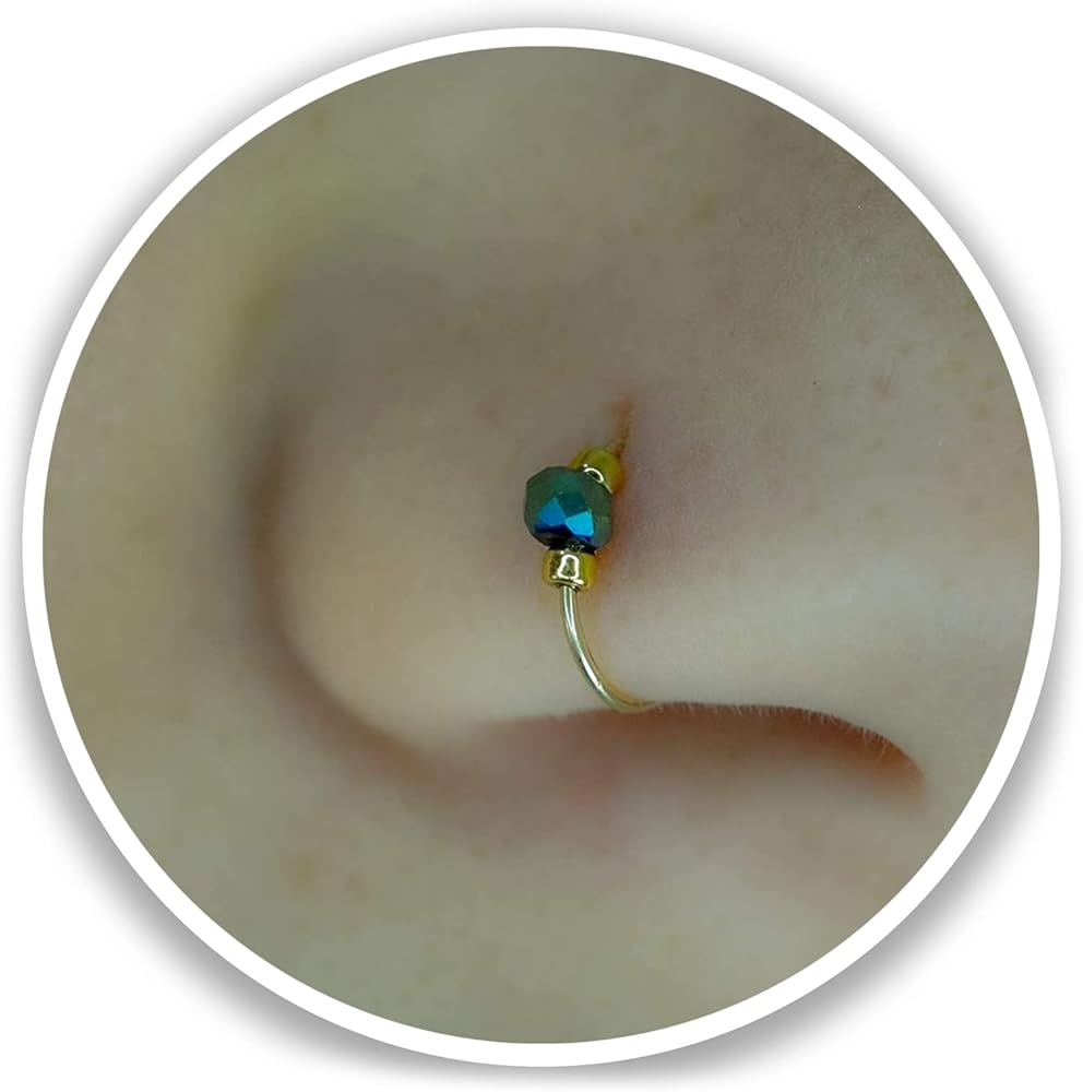 حلقة ثقب أنف صغيرة رفيعة مملوءة بالذهب عيار 14 قيراط - حلقة أنف ثقبية 2 مم - حلقة أنف رفيعة جدًا مقاس 24 حلقات أنف صغيرة مثقوبة