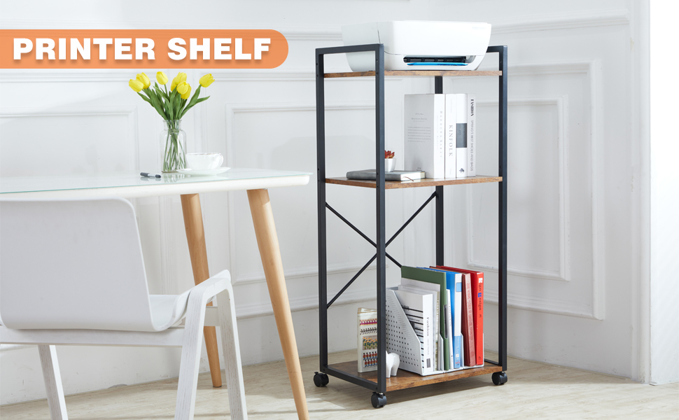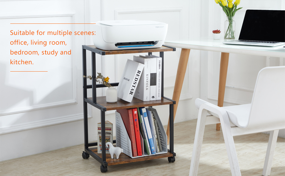 حامل متعدد الوظائف - يمكن استخدام الأرفف المزدوجة لحامل الطابعة ورف الكتب ورف التخزين وصينية وعاء النباتات وما إلى ذلك. المظهر النظيف والحديث مثالي للاستخدام المنزلي والمكتبي