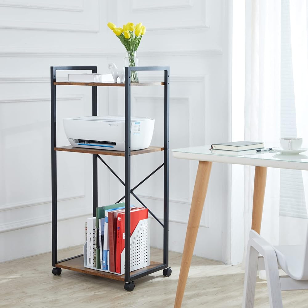 يوفر مساحة أكبر - حامل الطابعة الذي يسمح لك بوضع اللوازم المكتبية في الطابق السفلي والطابعات في الطابق العلوي، يحافظ حامل الآلة السلكية على سطح المكتب على الطابعات والماسحات الضوئية والآلات المكتبية الأخرى بعيدًا عن مكتبك، ولكن في متناول اليد. يوفر رفا التخزين مساحة واسعة لتخزين الورق ومسحوق الحبر واللوازم المكتبية الأخرى.