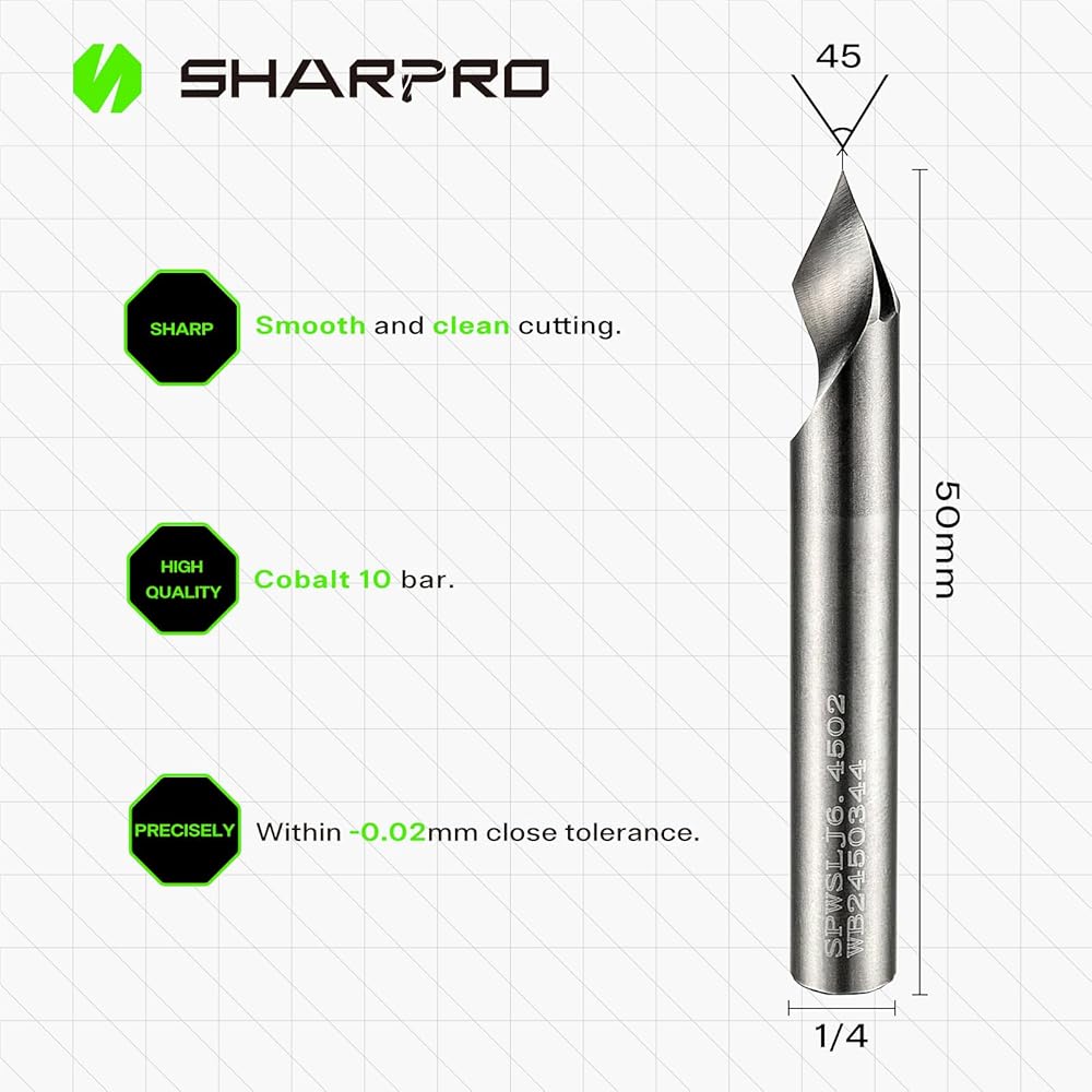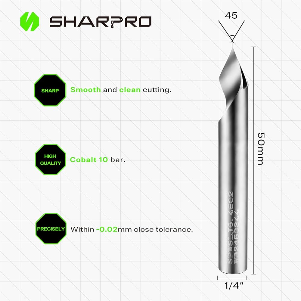 SHARPRO V Groove Router Bit 90 Degree 0.2mm Tip DIA. 1/4 Inch Shank CNC Solid Carbide V Bit for CNC Engraving and Chamfering Lettering