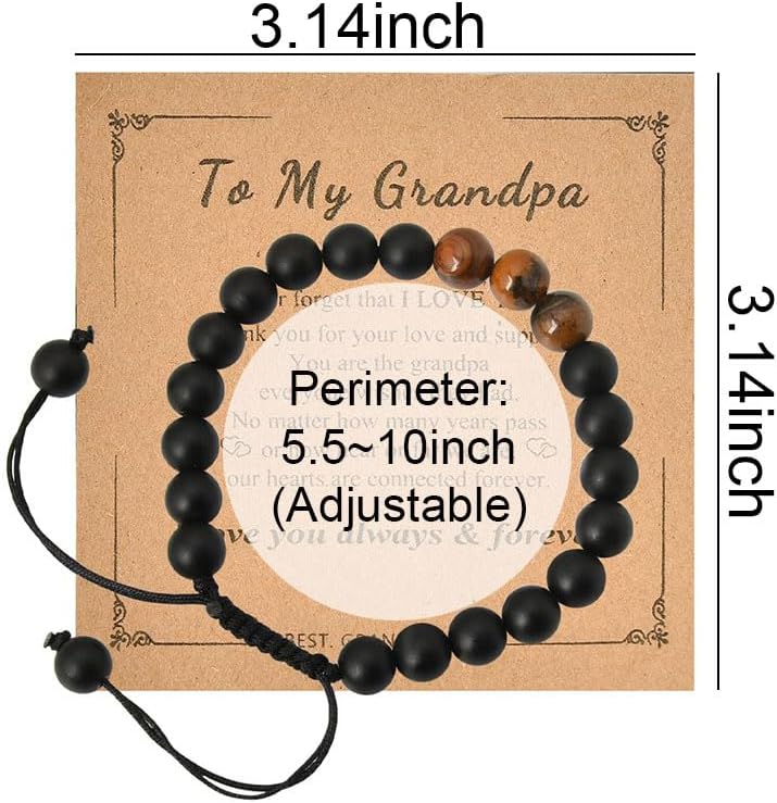 الحجم والخامة: سوار الجد للرجال، هو سوار قابل للتعديل مع عقدة منزلقة يمكن تعديلها من 15.24 سم إلى 27.94 سم، يناسب جميع معصم الرجال تقريبًا، مصنوع من أحجار عين النمر الطبيعية وأحجار العقيق الأسود، خفيف الوزن ارتداء، متين، قوي، سهل الملاءمة، هدايا رجالية ذات مغزى لأعياد الميلاد، وعيد الميلاد، والذكرى السنوية، وعيد رأس السنة، وعيد الأب، والحفلات اليومية وغيرها من المهرجانات وما إلى ذلك
