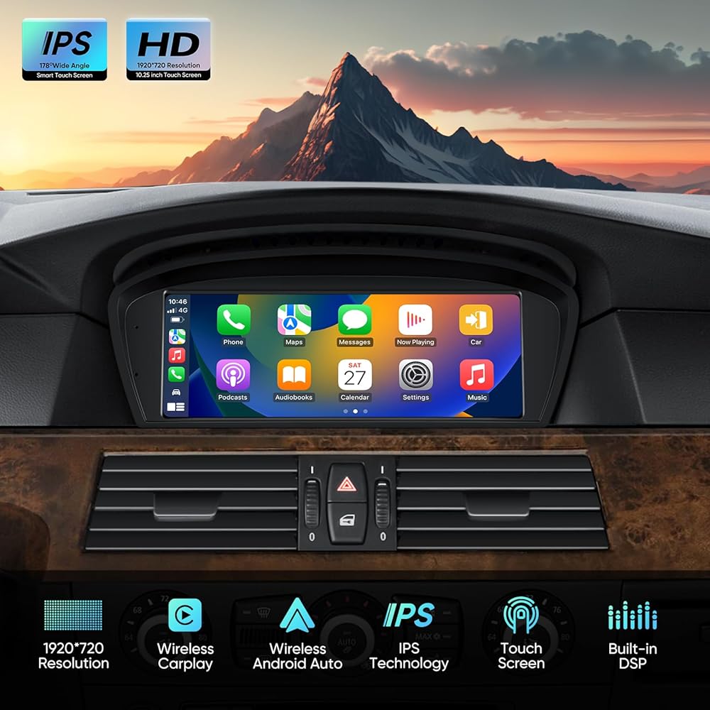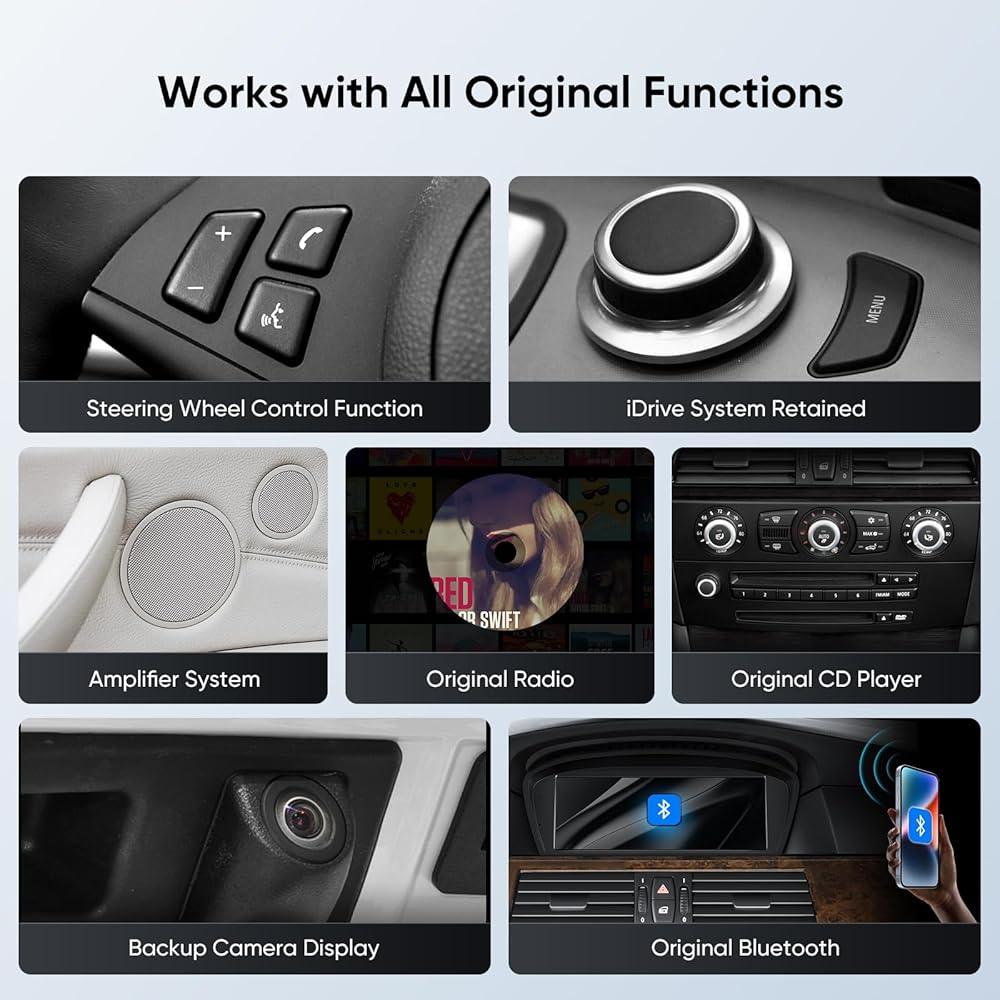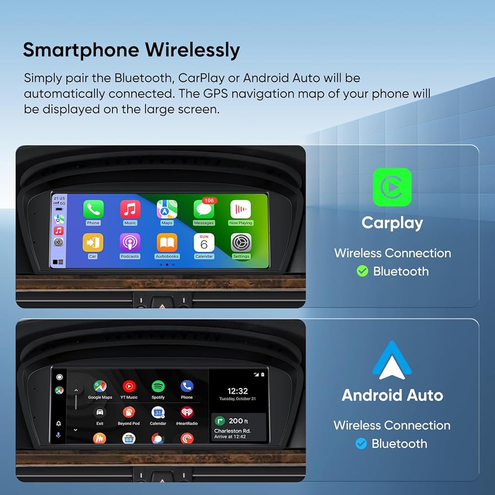 • 【تكامل مثالي】مصمم خصيصًا لسيارات BMW. لا تتطابق هذه الوحدات مع لوحة القيادة الأصلية للحصول على مظهر متكامل تمامًا فحسب، بل توفر أقوى تجربة لاسلكية CarPlay /Android Auto وشاشة تعمل باللمس لسيارتك BMW، مما يجعل لوحة القيادة أكثر ذكاءً من أي وقت مضى.